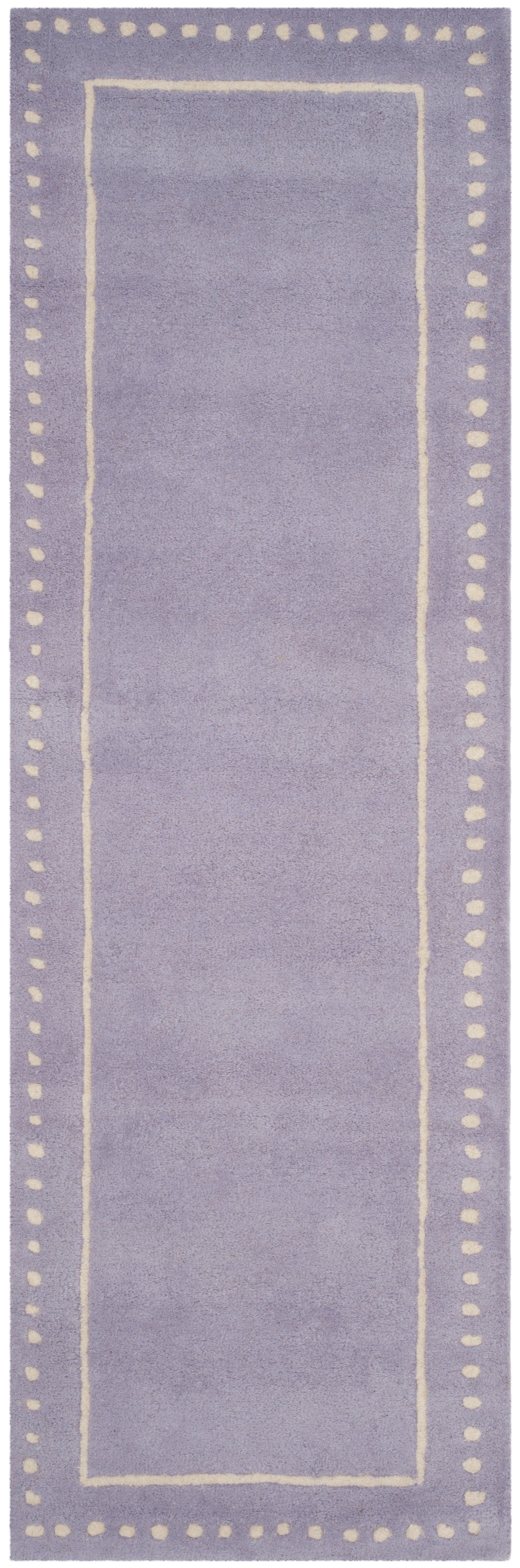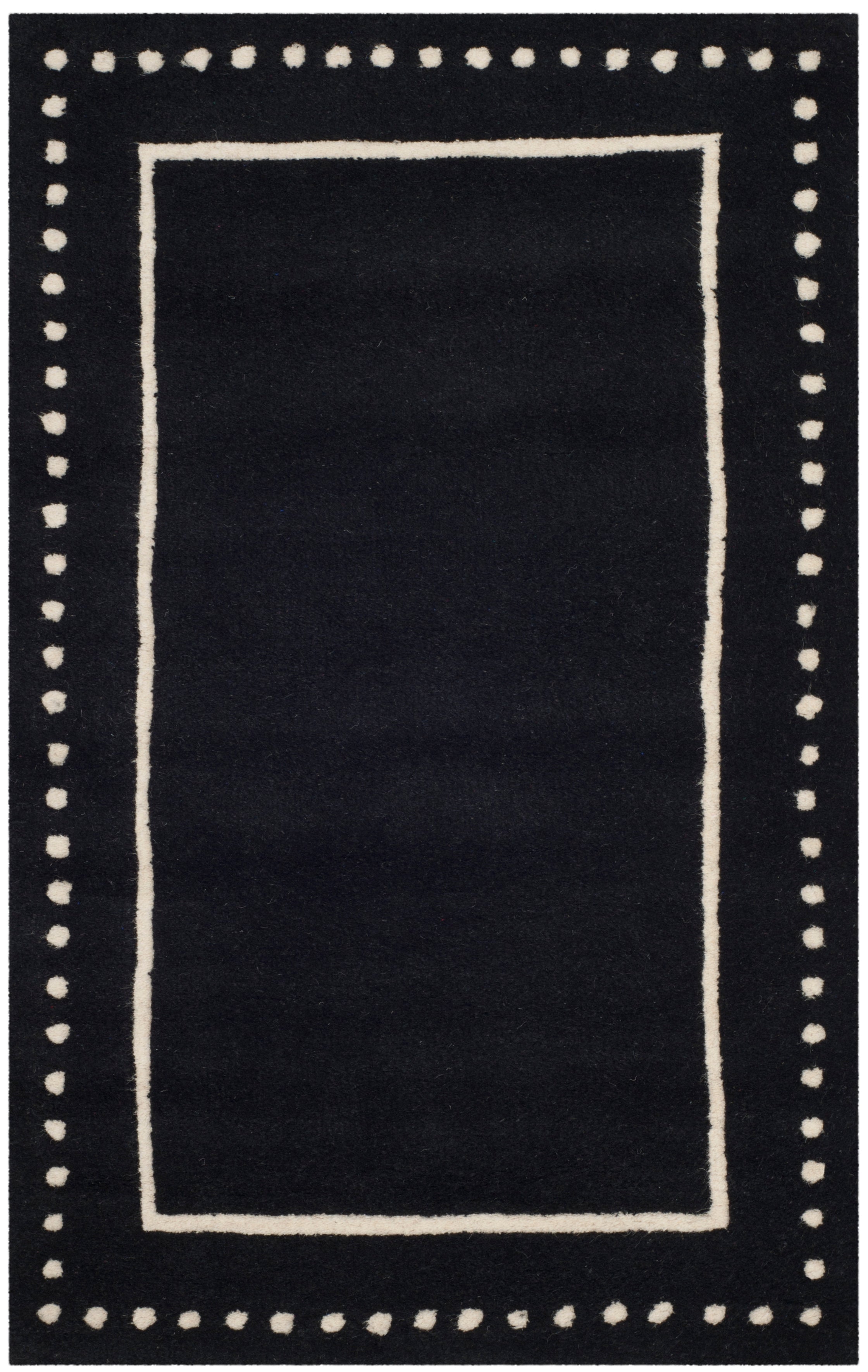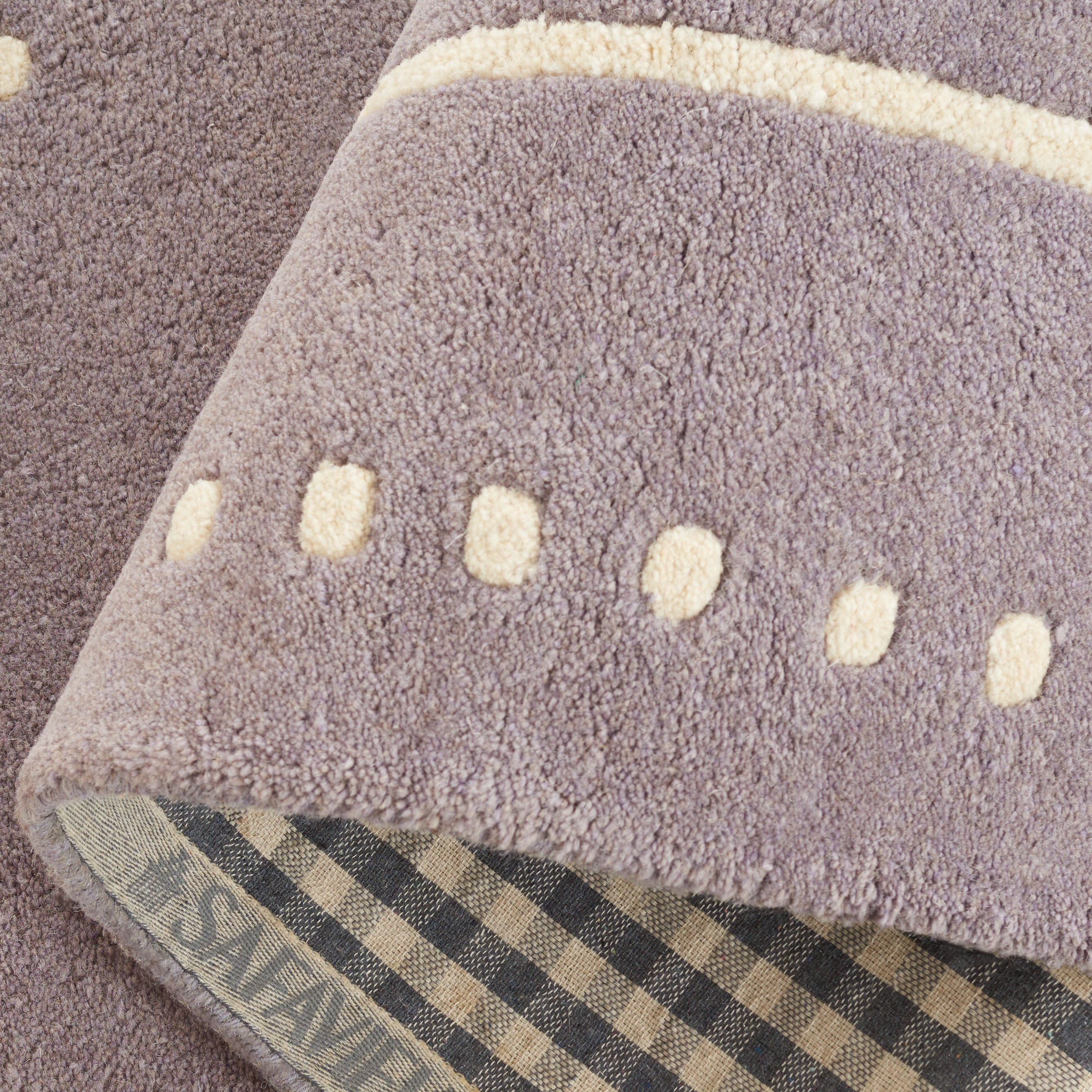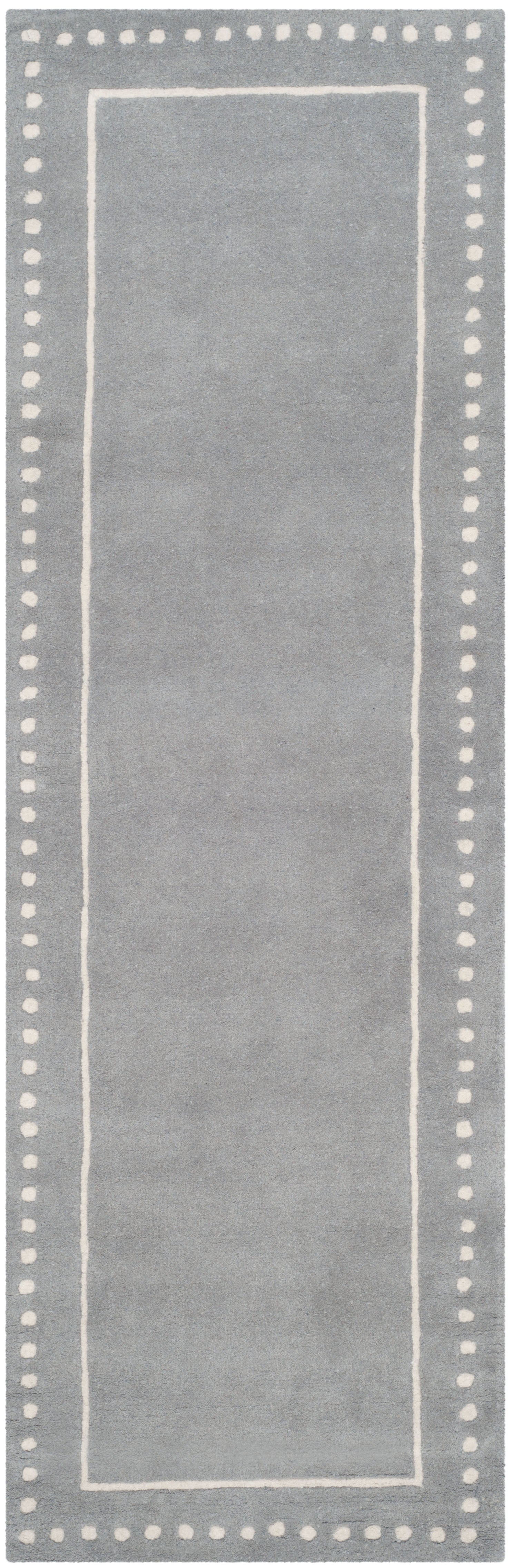 Featuring a plush pile height of 3/8", it provides the perfect combination of comfort and sophistication. The rug creates a serene and welcoming atmosphere. The appealing pattern, as depicted in the image, showcases a clean border with evenly spaced dot motifs, adding detail and interest without overwhelming the design.