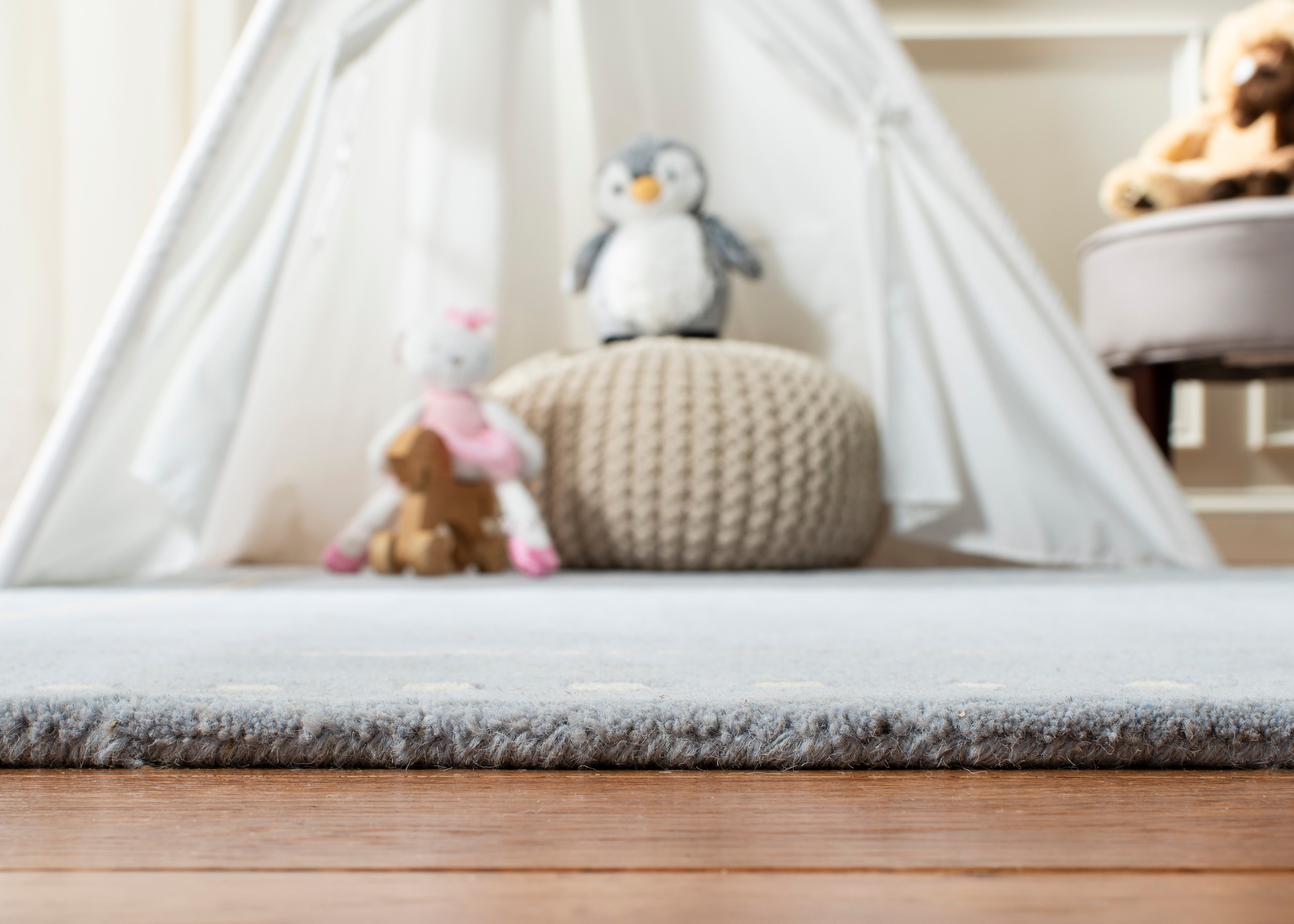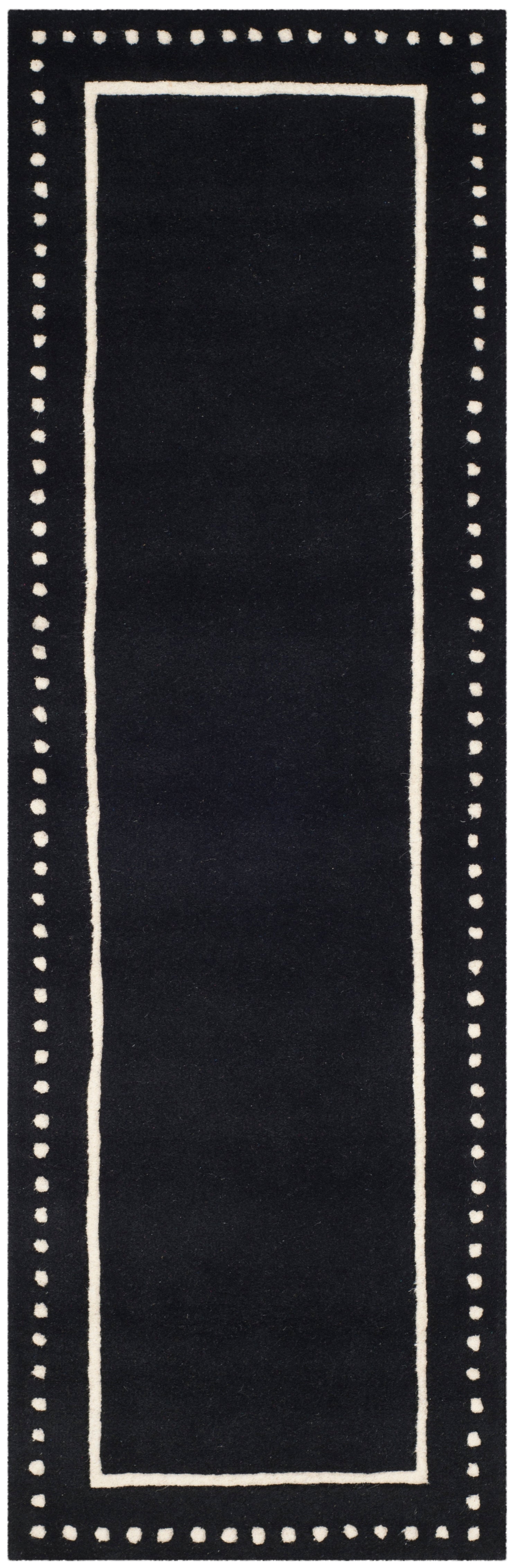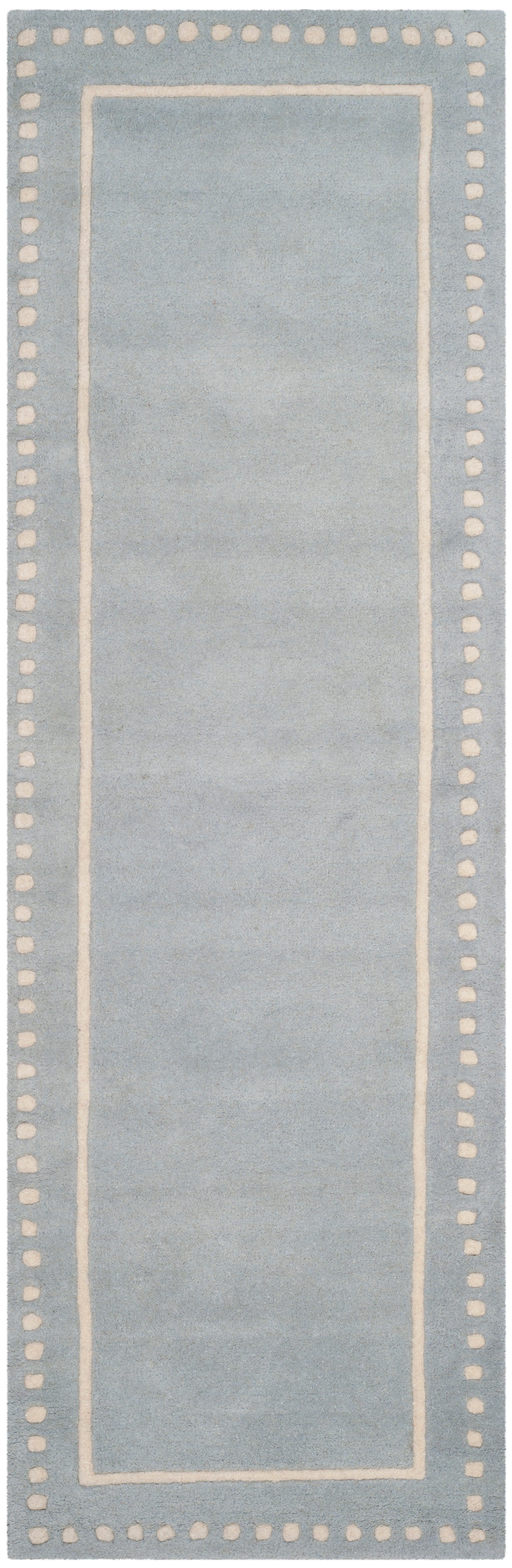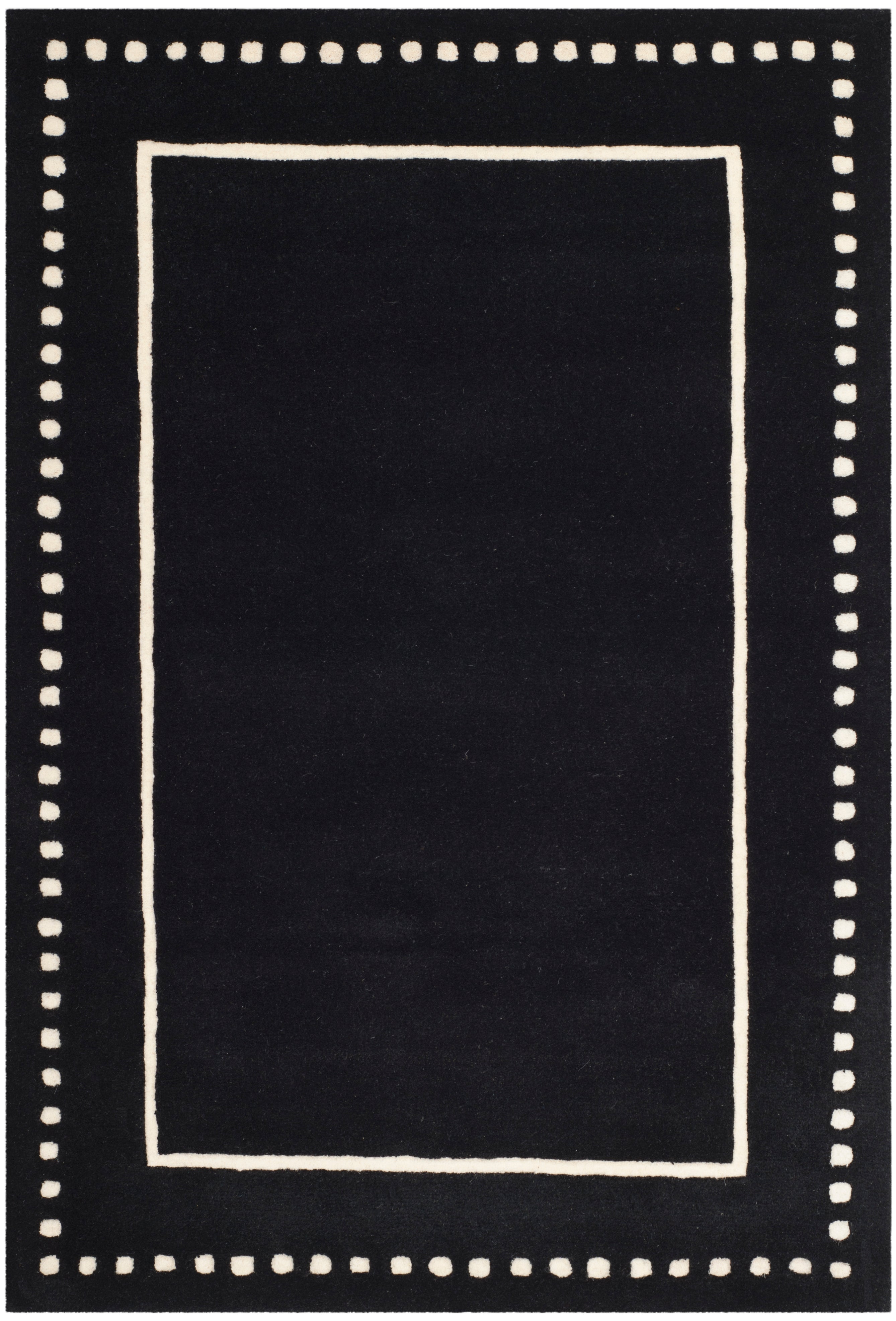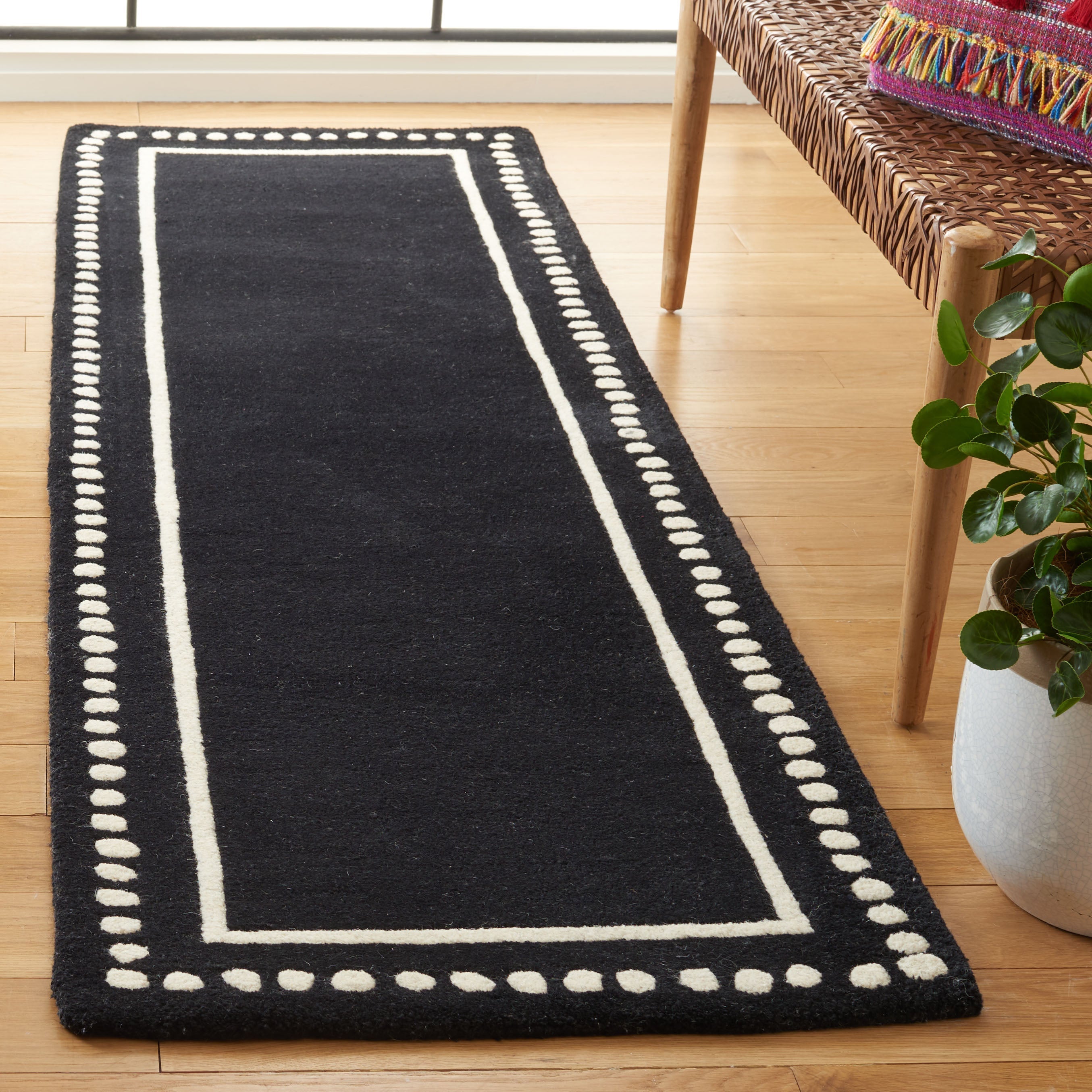 Featuring a plush pile height of 3/8", it provides the perfect combination of comfort and sophistication. The rug creates a serene and welcoming atmosphere. The appealing pattern, as depicted in the image, showcases a clean border with evenly spaced dot motifs, adding detail and interest without overwhelming the design.