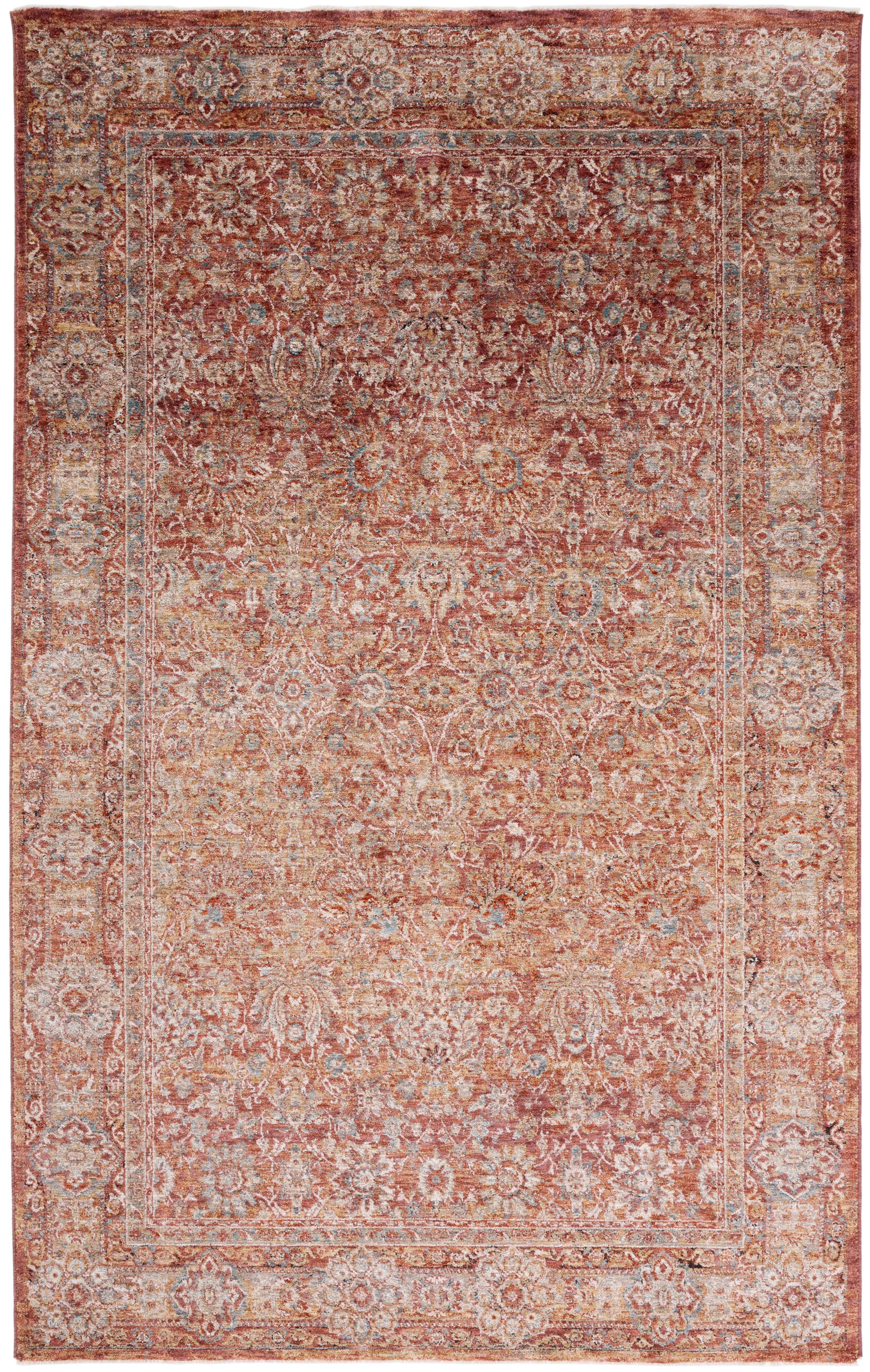 Traditional design and fashion-forward styling come together in a collage of color in the Valencia Rug Collection. Saturated hues pop from these overdyed rugs. A lustrous patina lends an expressive look the suggestive motifs. Made using soft synthetic yarns with serged edges for a designer-look finish.