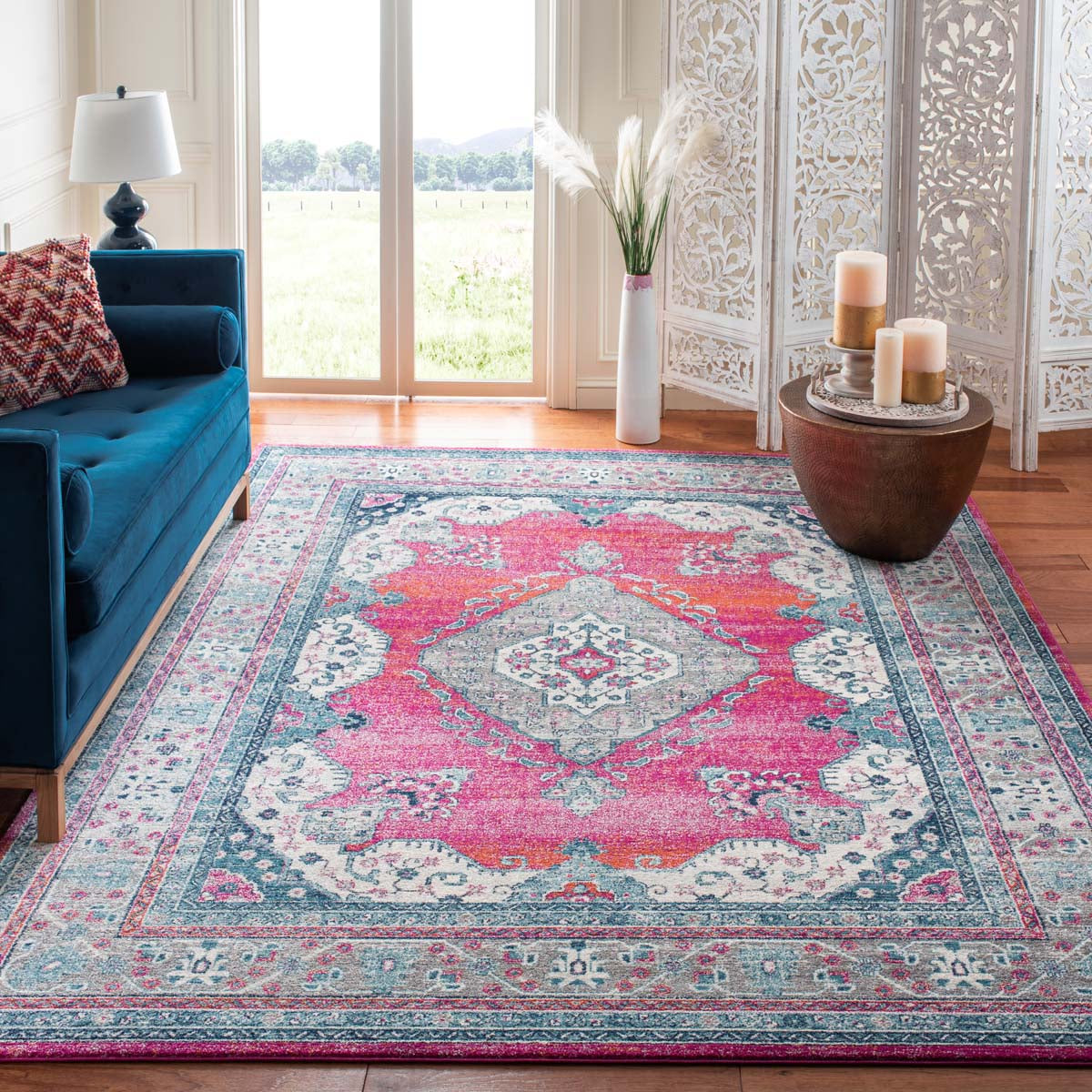 Safavieh Evoke Rug Collection EVK250R - Fuchsia / Navy