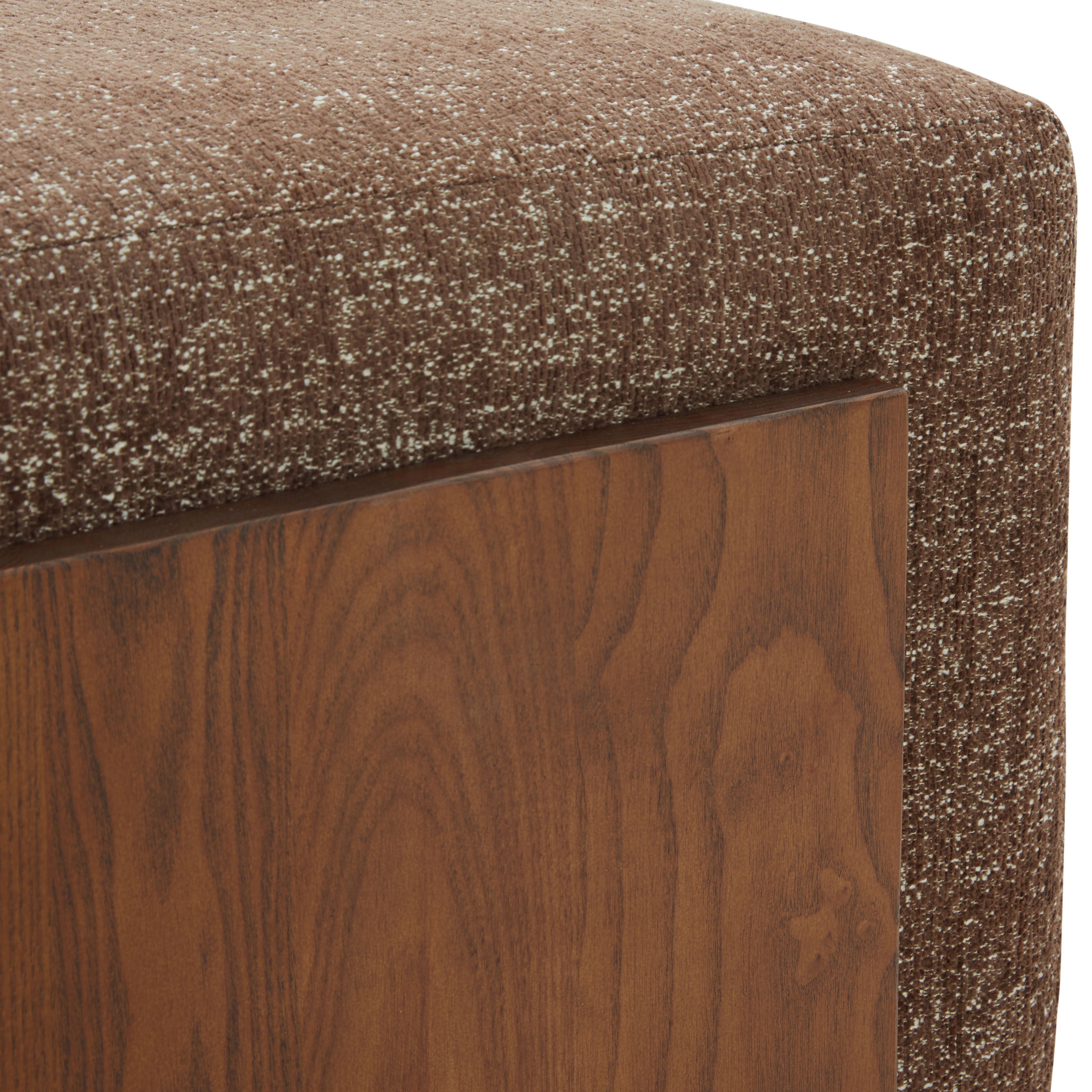 Transform your space with the Norabeth chenille and wood ottoman in walnut. This elegant piece effortlessly combines style and function, making it an ideal addition to any room. The ottoman features a sturdy wooden base that offers reliable support while exuding warmth with its walnut finish. The fabric upholstery adds a touch of sophistication and comfort. Redefine coziness and style in your home with this multifunctional ottoman. Experience the perfect balance of form and function today.
