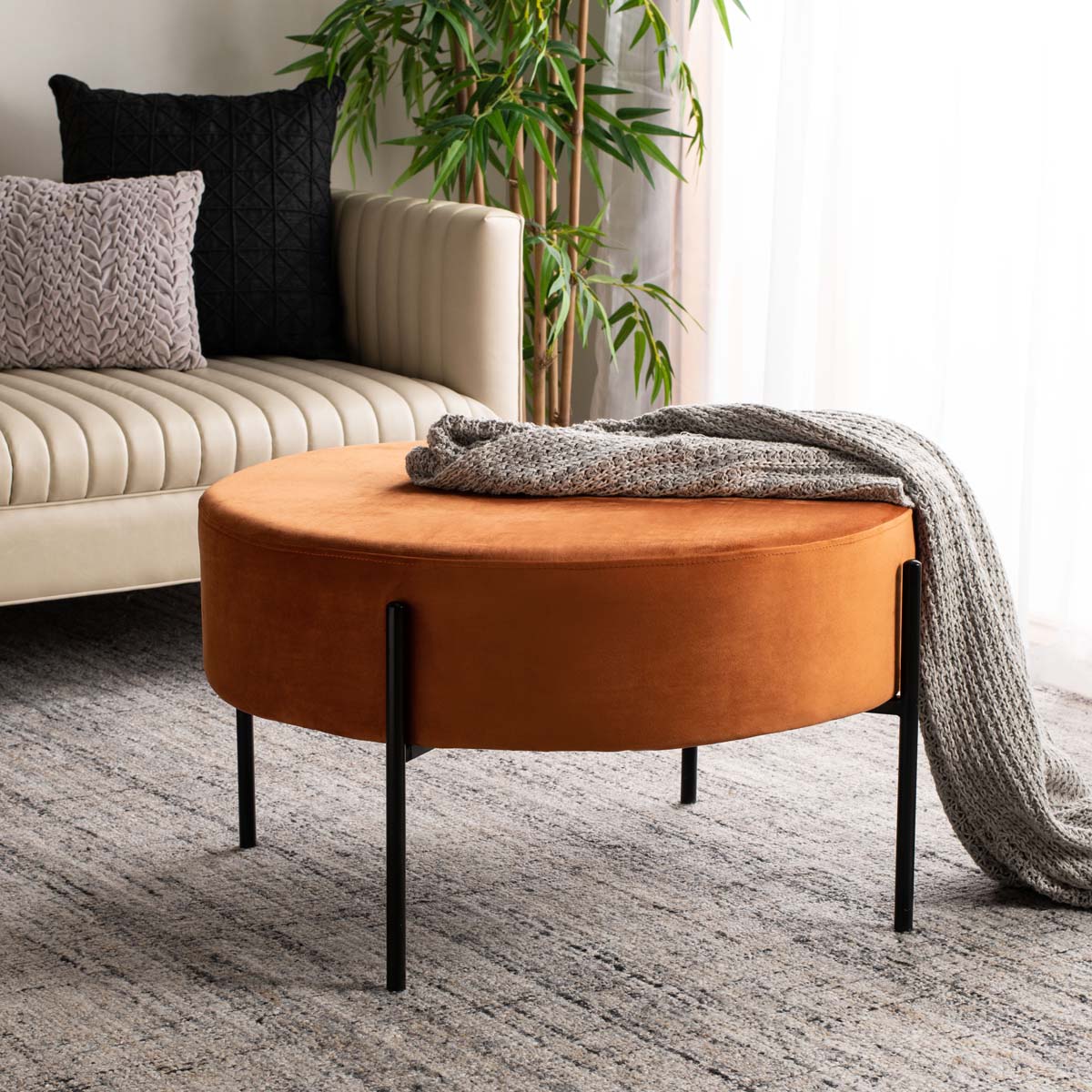 Safavieh Lisbon Round Cocktail Ottoman - Sienna / Black