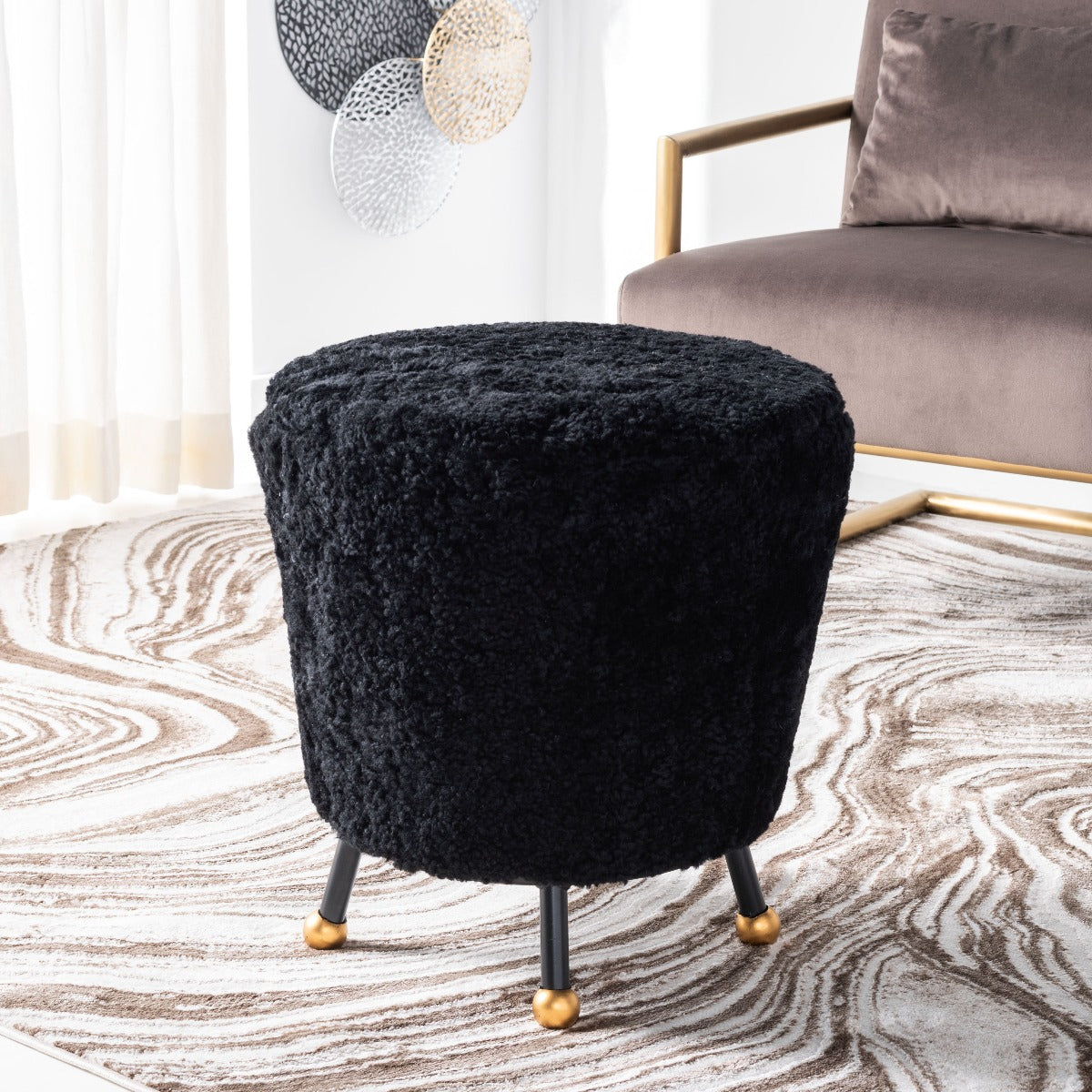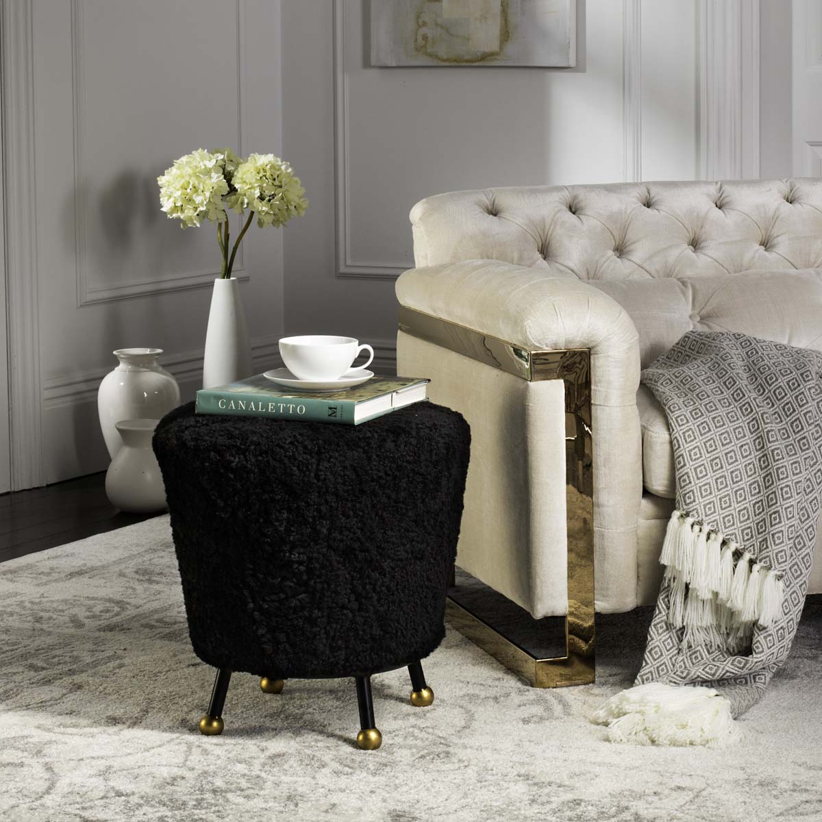 Safavieh Oriana Retro Sheepskin Ottoman - Black