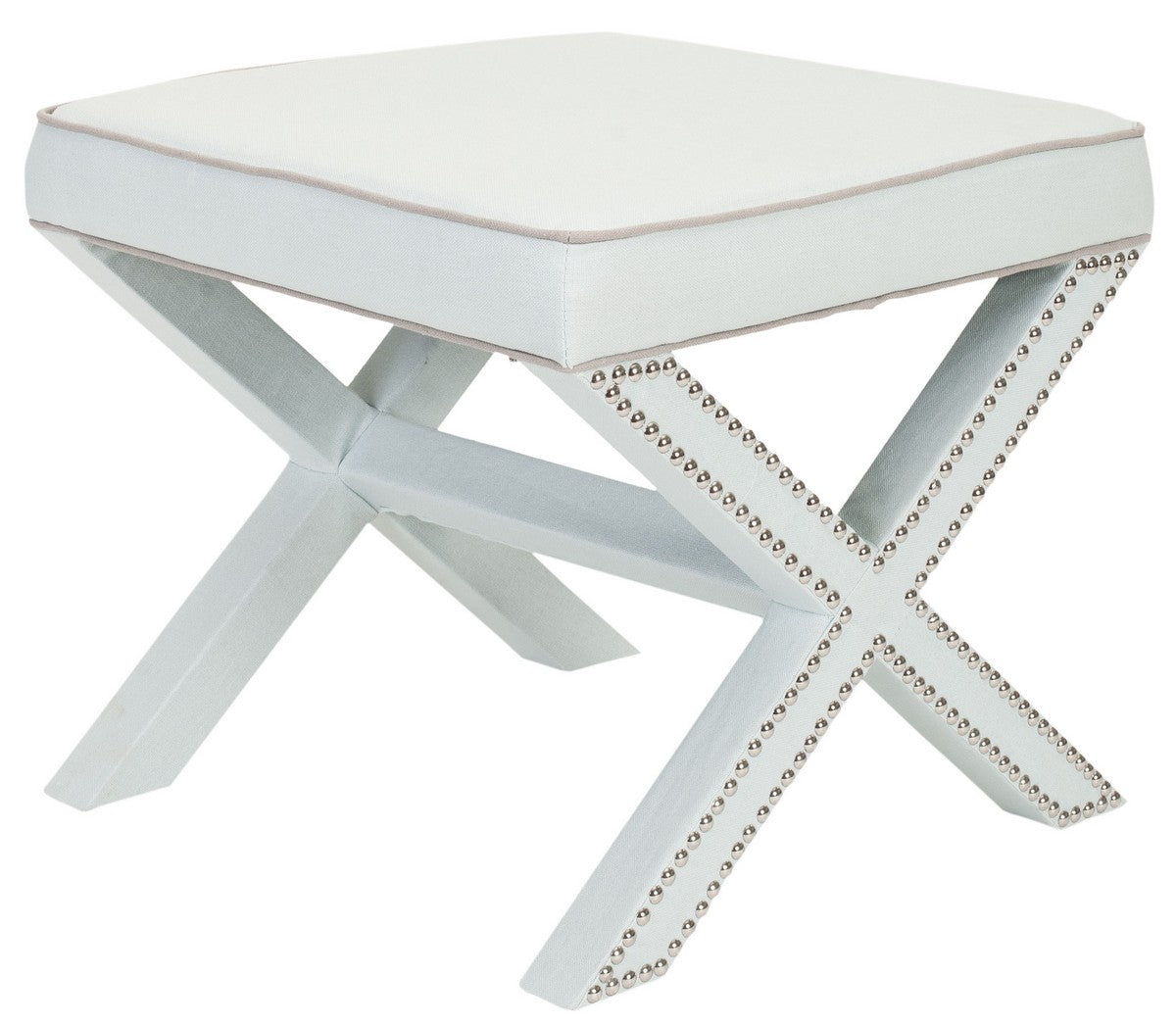 Safavieh Palmer Ottoman - Silver Nail Heads - Robins Egg Blue