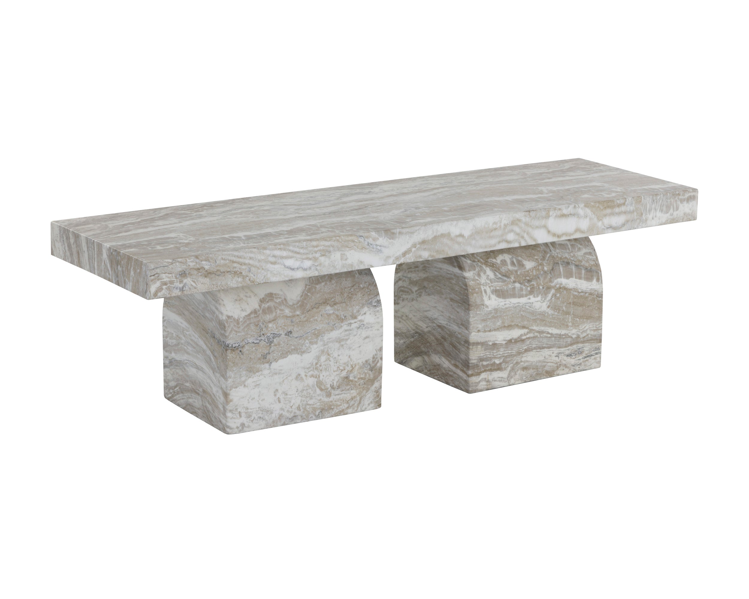 A contemporary bench that illustrates the beauty of natural elements. Crafted with a marble-look finish.