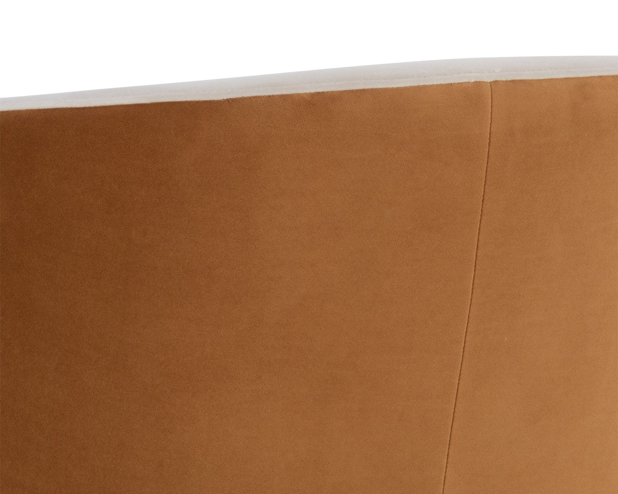 Velvety soft fabric and inviting curves give the Sarina Swivel Lounge Chair a relaxing experience. This stylish two-tone design is expertly upholstered with meg taupe fabric on the seat interior and meg gold fabric on the back exterior.