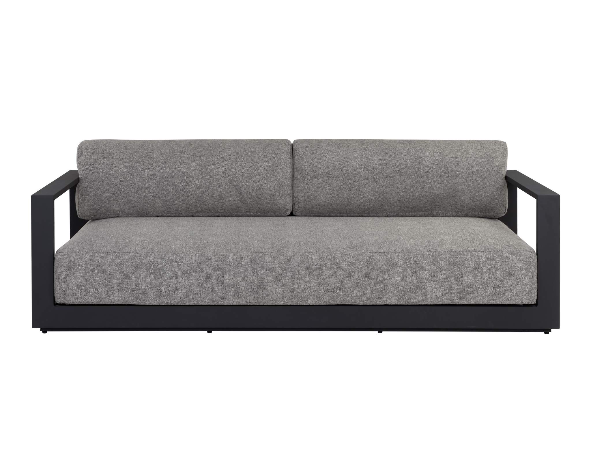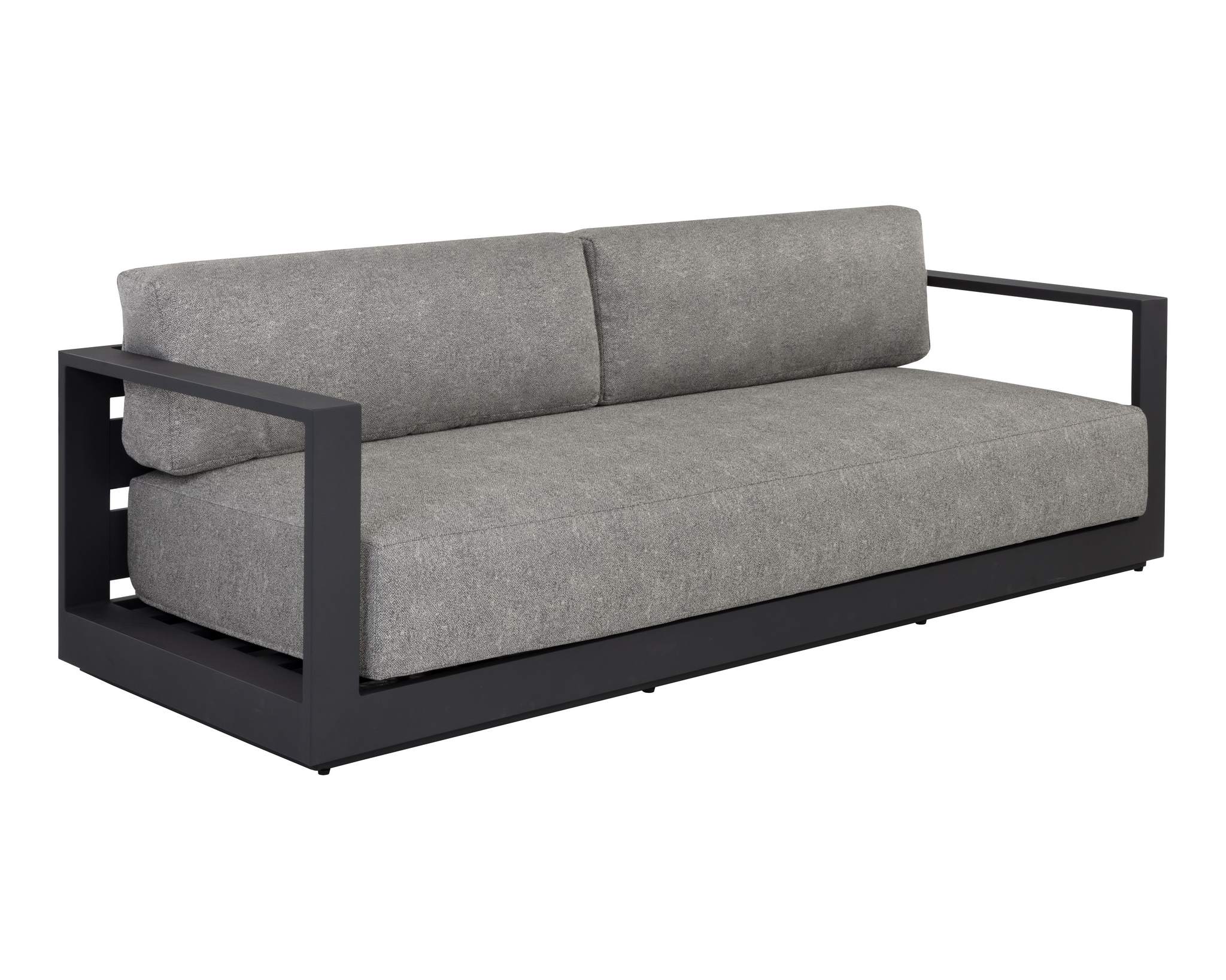 Cherish the outdoors with this modern sofa from the Outdoor by SUNPAN collection that offers a comfortable and laid-back style. Stocked in lanikai salt and pepper fabric and completed with a powder-coated charcoal aluminum frame.