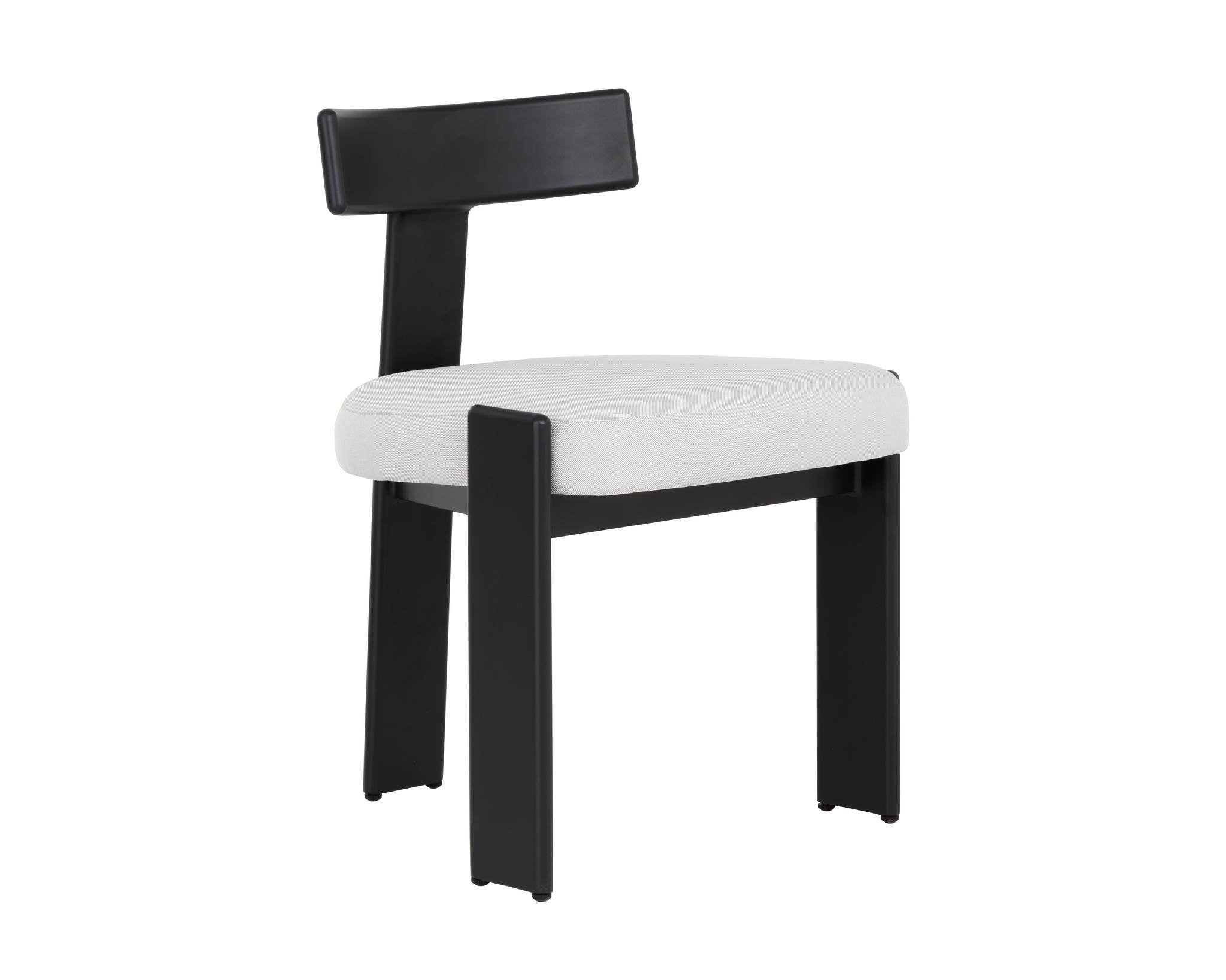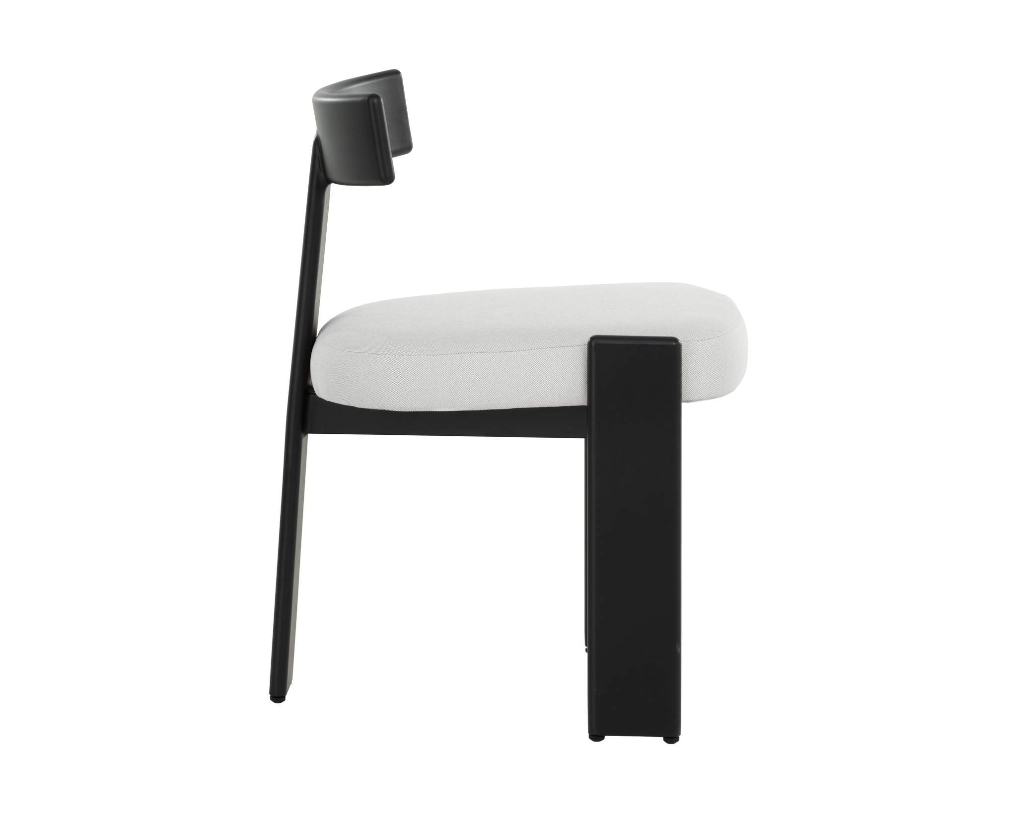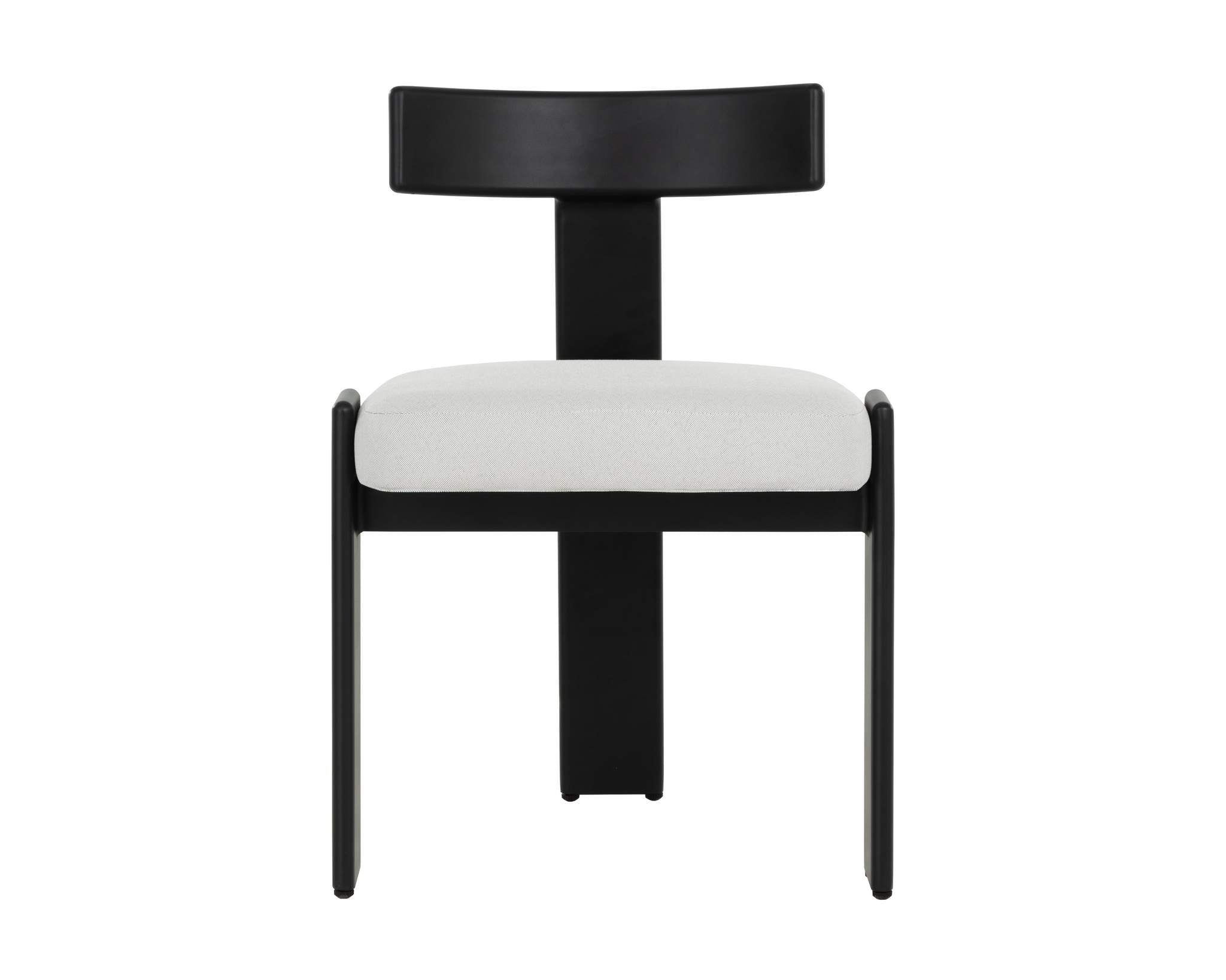 The Titan Dining Armchair is a masterful re-iteration of classic modern design. Palazzo cream performance fabric and a striking aluminum frame come together to create an unforgettable impression.
