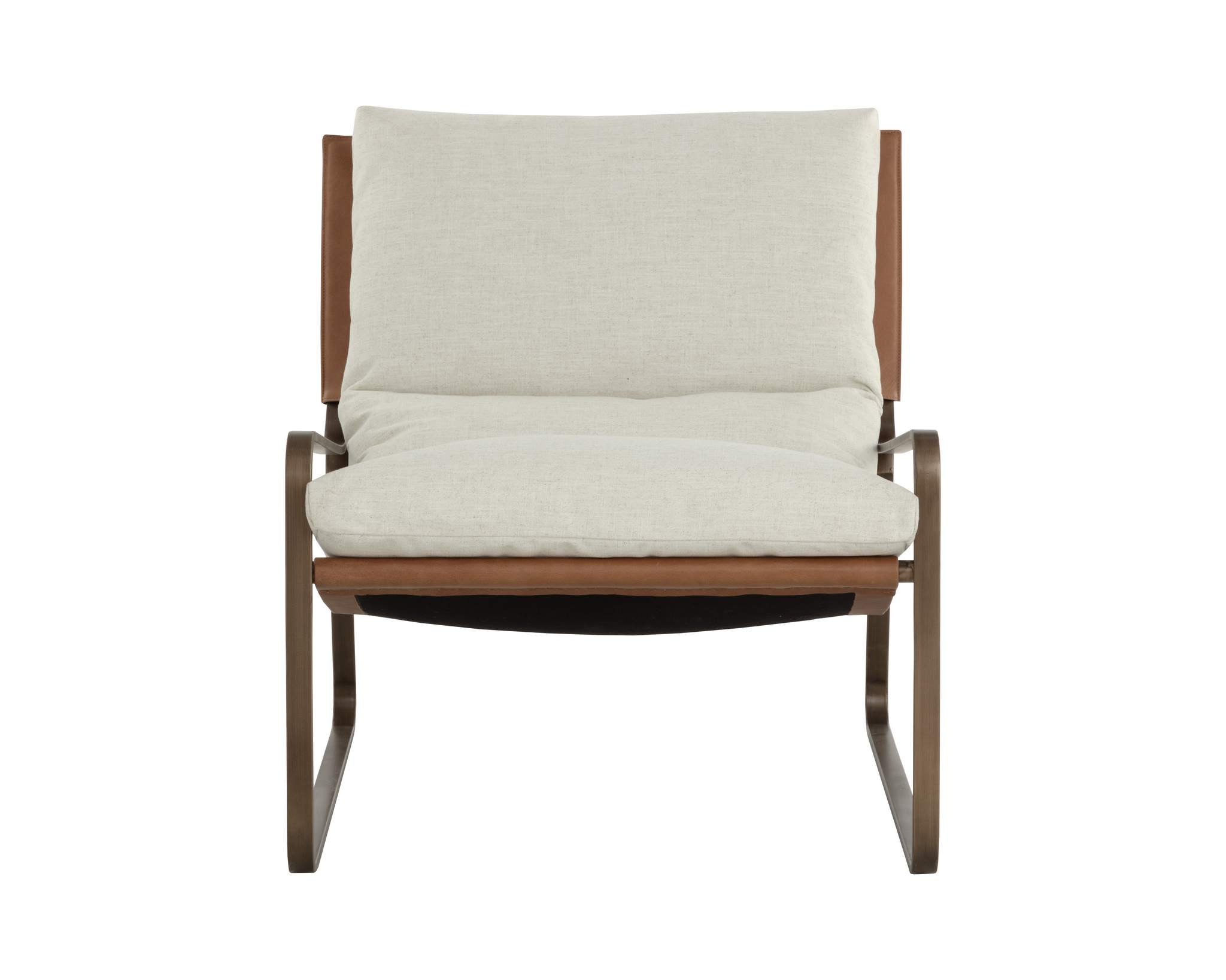 Zancor Lounge Chair - Antique Brass - Geralt Linen / Tan Leather | Sunpan Furniture - 112110
