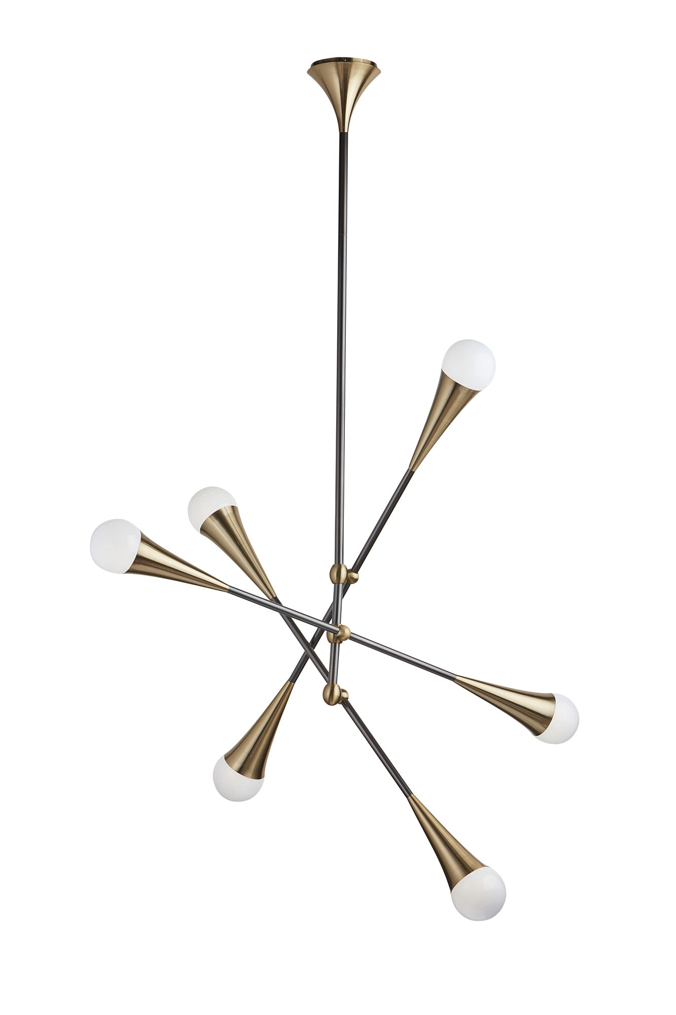 Create intrigue and illumination in living and dining spaces with this modern sputnik-style ceiling light. Features three adjustable crossing arms that can be rearranged. Crafted from iron with black and brass finishes. Install multiples for a dramatic look. Requires 6 light bulbs and maximum 40 watts each.