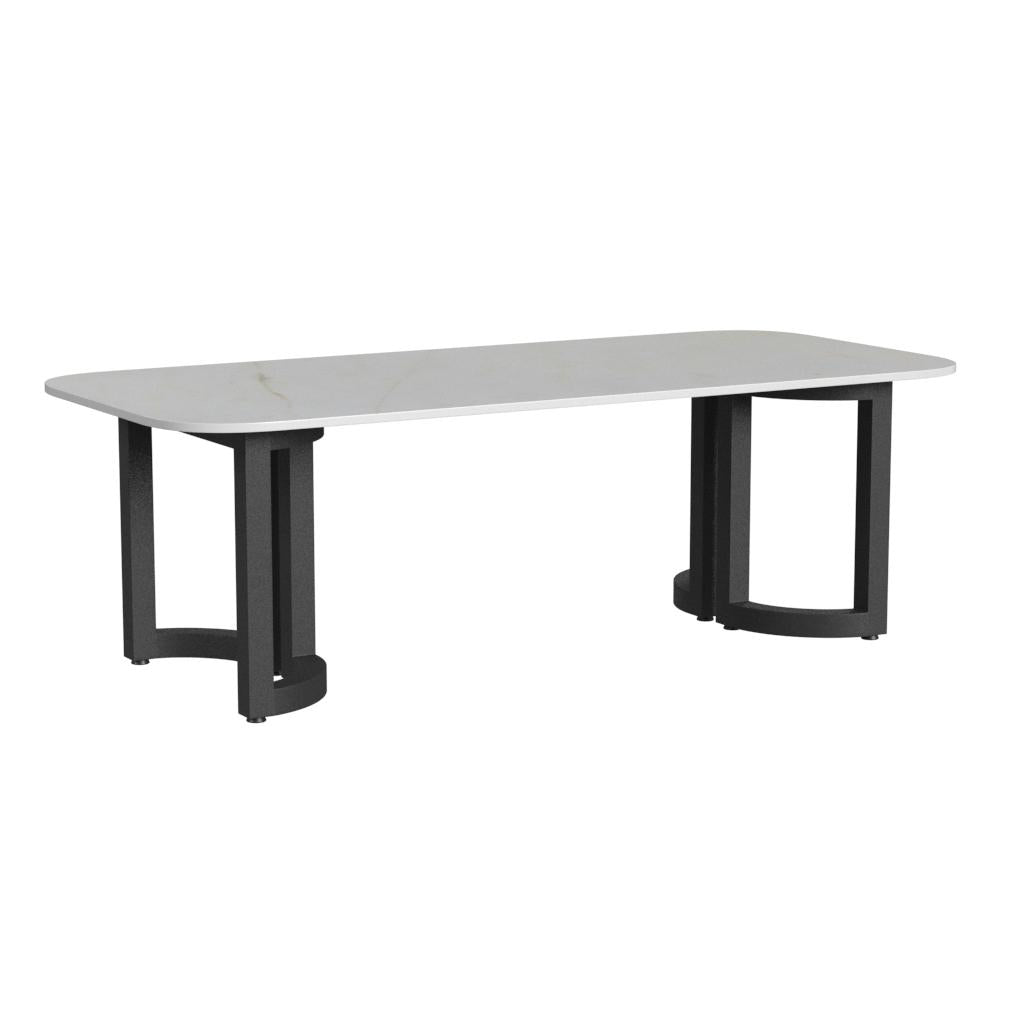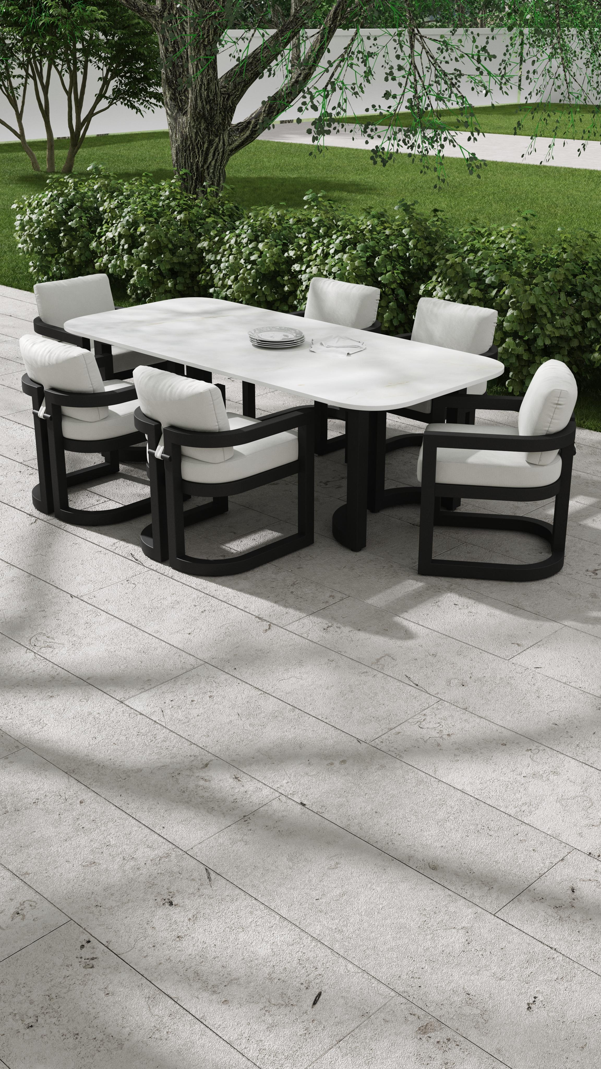 Deco meets contemporary with Sunset West’s Malibu Collection. Featuring a structural design with modern proportions, the Malibu Dining Table adds a sophisticated, sleek look with its curved edges and matte coal finish.