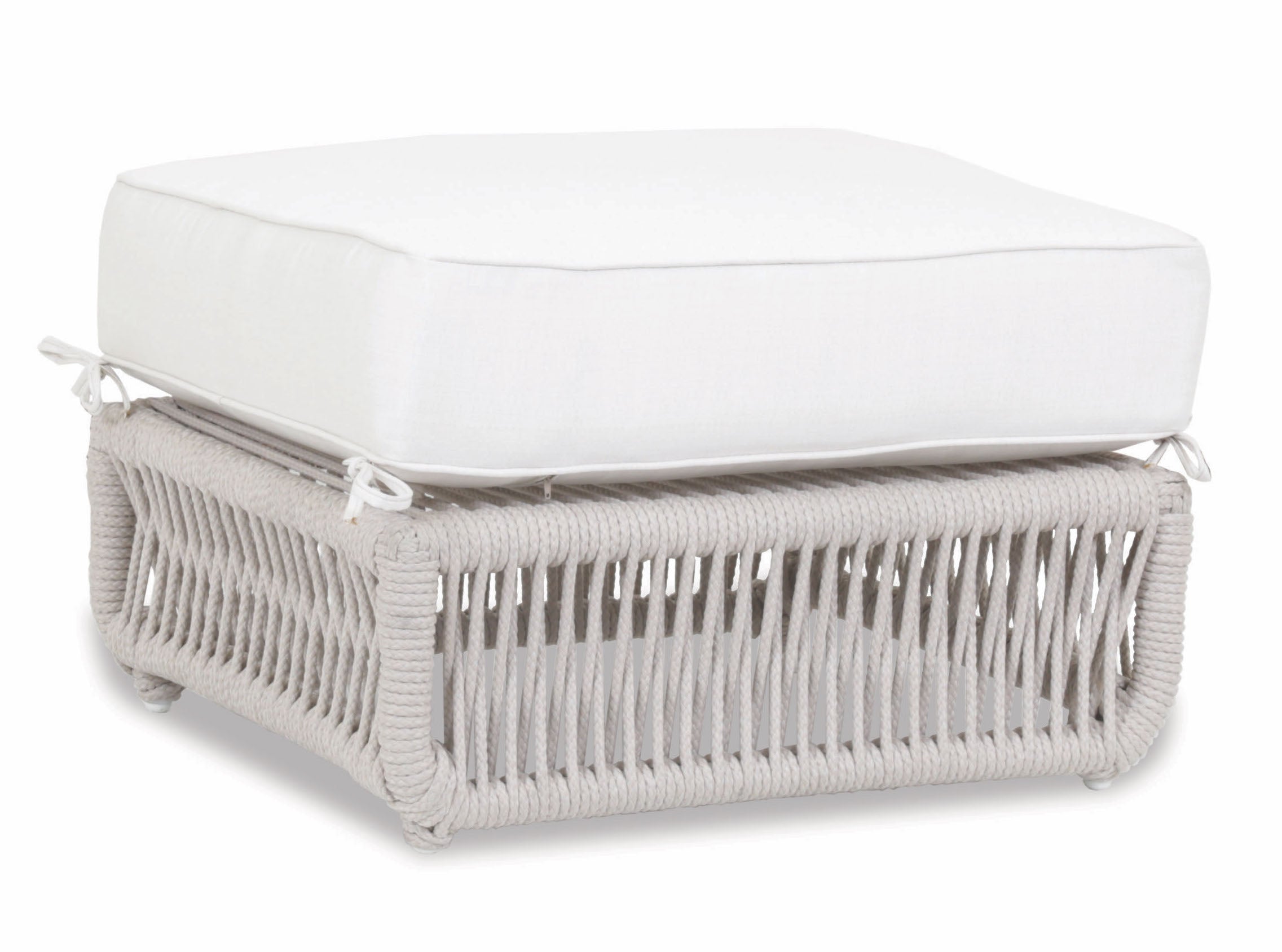 Featuring a plush 6" cushion, The Dana Ottoman is styled with a box frame expertly wrapped in premium all-weather olefin rope in natural Linen.