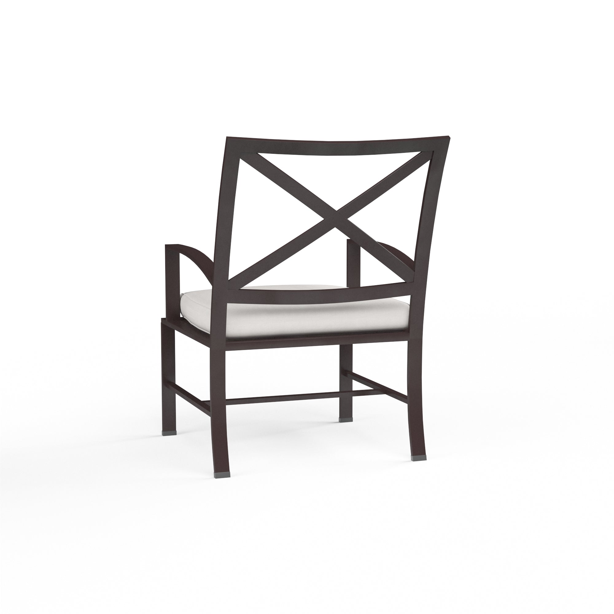 Sunset West's classic La Jolla Dining Chair is rendered in high quality, low maintenance aluminum that will stand the test of time. This Dining Chair features a gently curved X back and seat scaled for comfort, with straight channel legs and subtly curved arms.