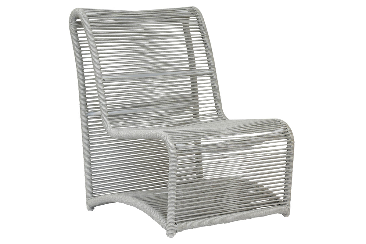 The Miami Armless Club Chair steps outside of traditional outdoor furniture design boundaries to deliver a winning combination of both whimsy and refinement. Featuring an open frame, The Miami is engineered for equal parts comfort and style: the striking silhouette is crafted with thoughtful curves and a premium olefin rope design to provide ultimate support and statement.