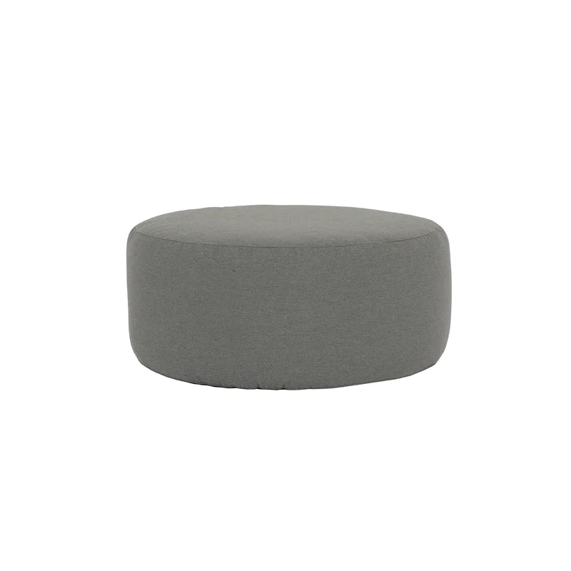 42 x 42" round ottoman stocked in Heritage Granite, custom fabric, welt, or flange detail available in approx. 4 weeks.