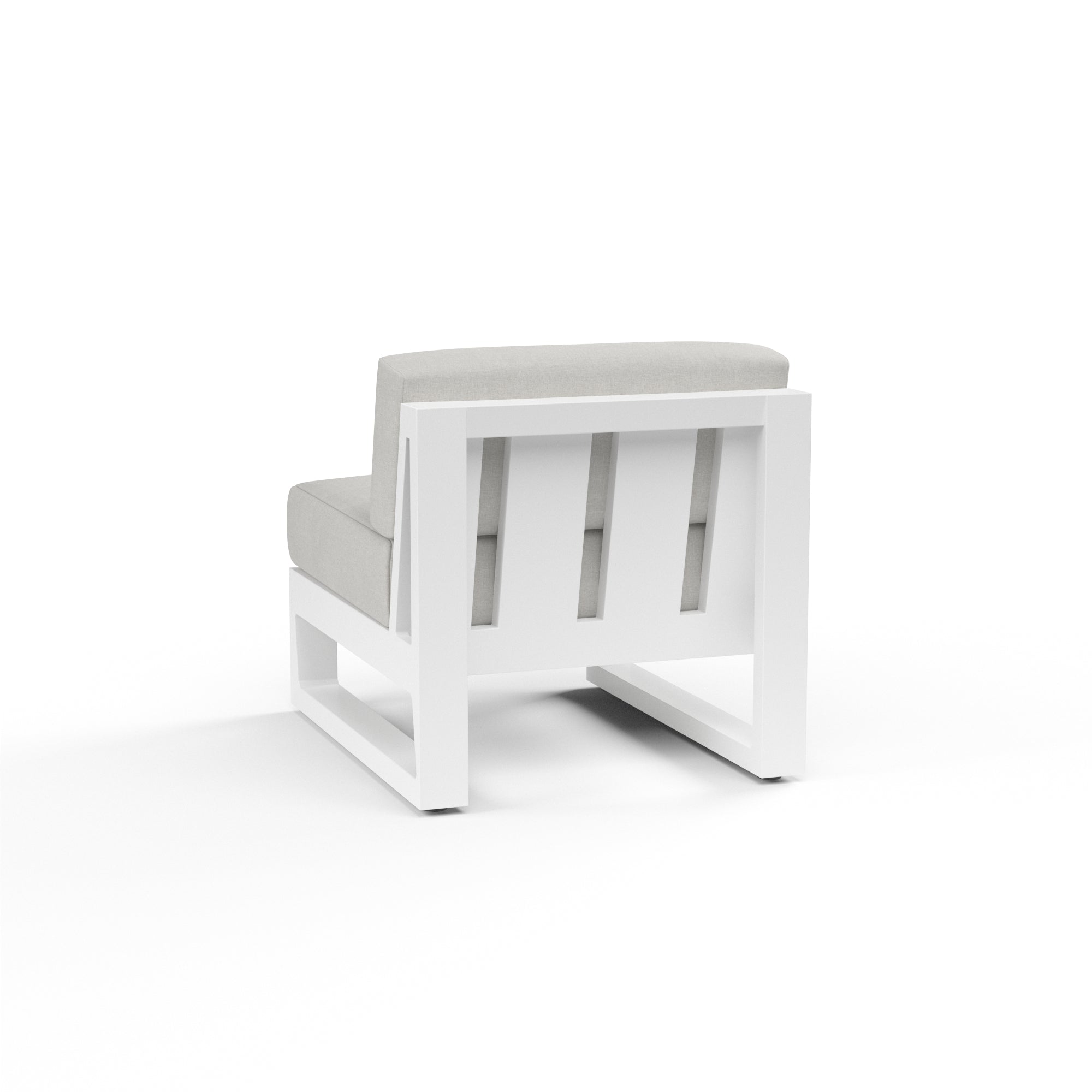 The Newport Armless Club Chair blends modern and industrial sensibility into one striking design. Informed by mid-century design elements, the Newport features a low back and smart, linear frame. Crafted in powder coated aluminum in a White Satin finish.