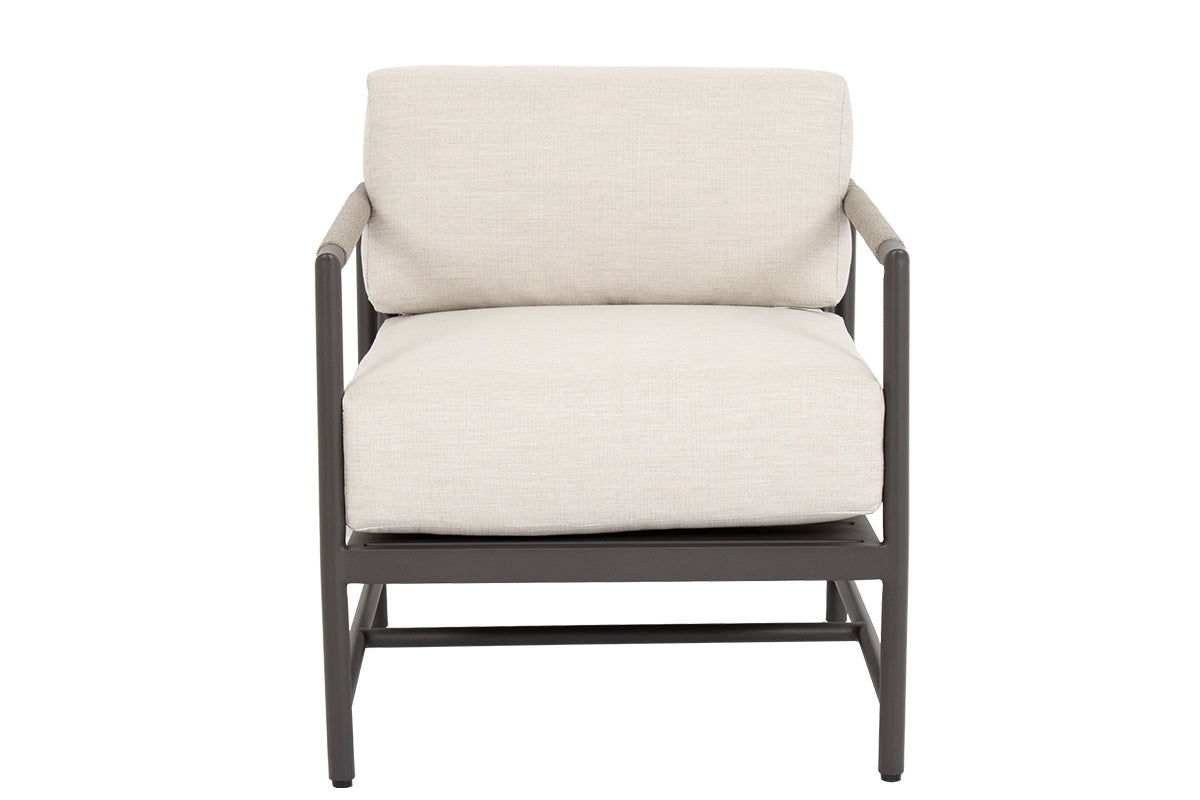 Informed by mid-century design, Pietra Club Chair incorporates the best of classic proportions with modern materials. Inspired by the subtle tones of natural stone, this piece is rendered in a matte Graphite aluminum with vary-colored Shale all-weather rope. It features a rounded tube frame and mid-rise back, that is perfectly scaled for smaller spaces and casts a compelling profile.