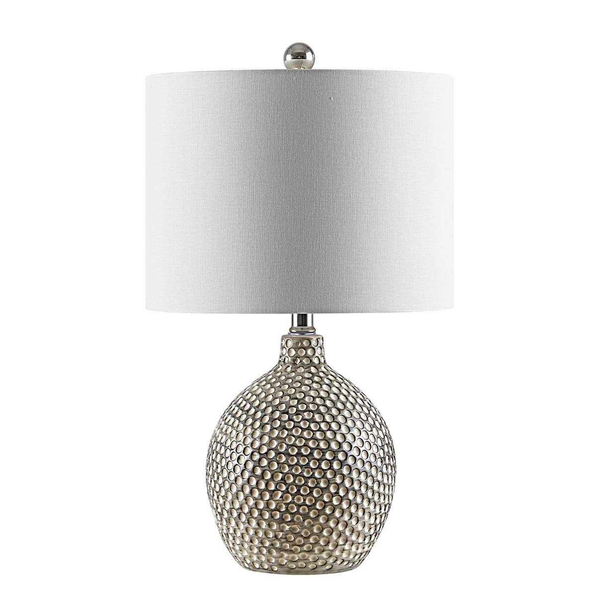 Give your d?cor a modern retro touch with this Breeda Table Lamp. Styled after pop art from the 50?? and 60??, Breeda?? neutral tones, subtle distressing, and white drum shade soften the look while its iconic dotted pattern makes it a striking statement piece in any eclectic interior.