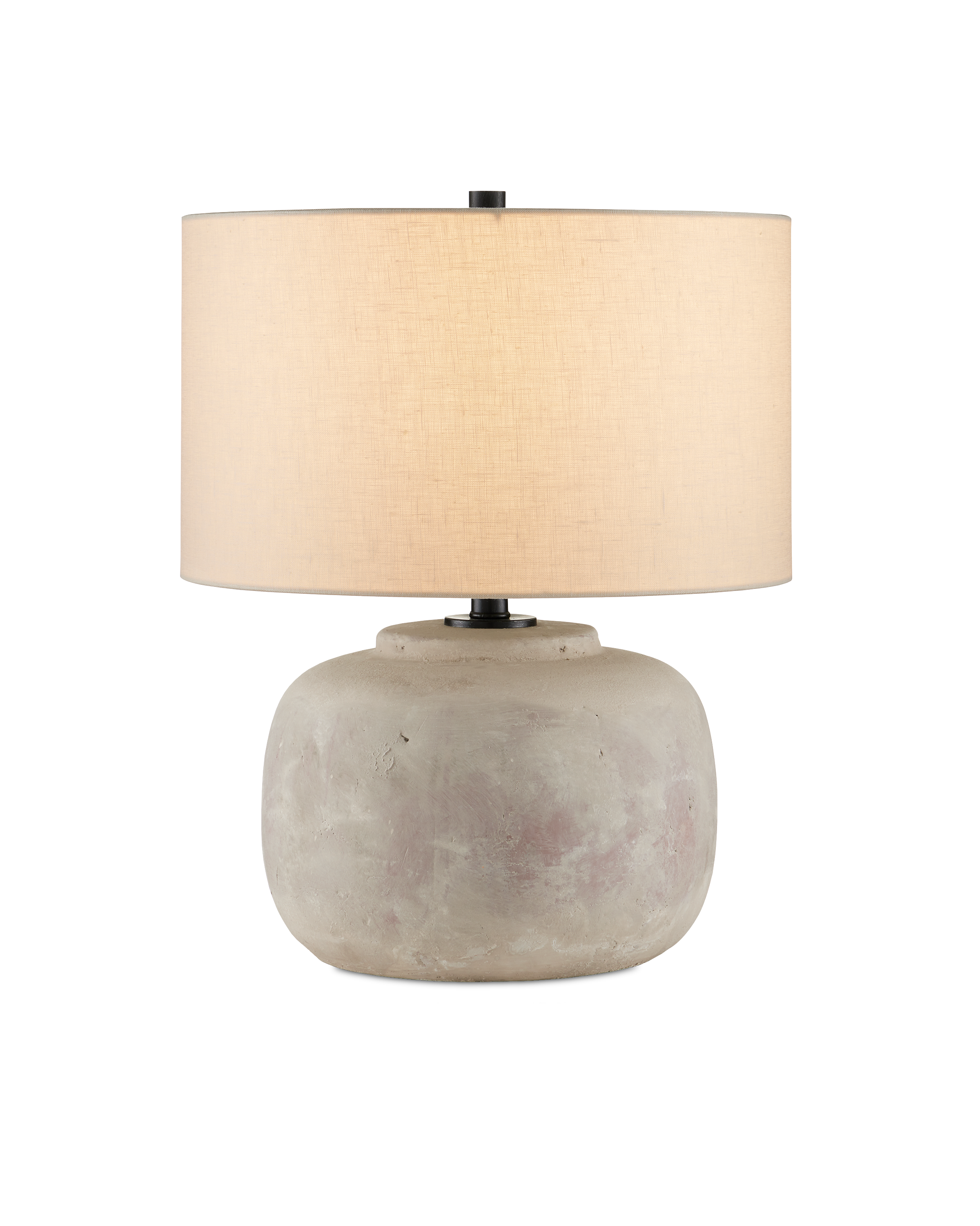 The Beton Table Lamp has a distressed finish on its concrete body aptly named antique earth. This is one of our products that illustrates the talented finish artisans who make our new products look beautifully aged. We've topped this buxom distressed gray lamp with a light beige linen shade.