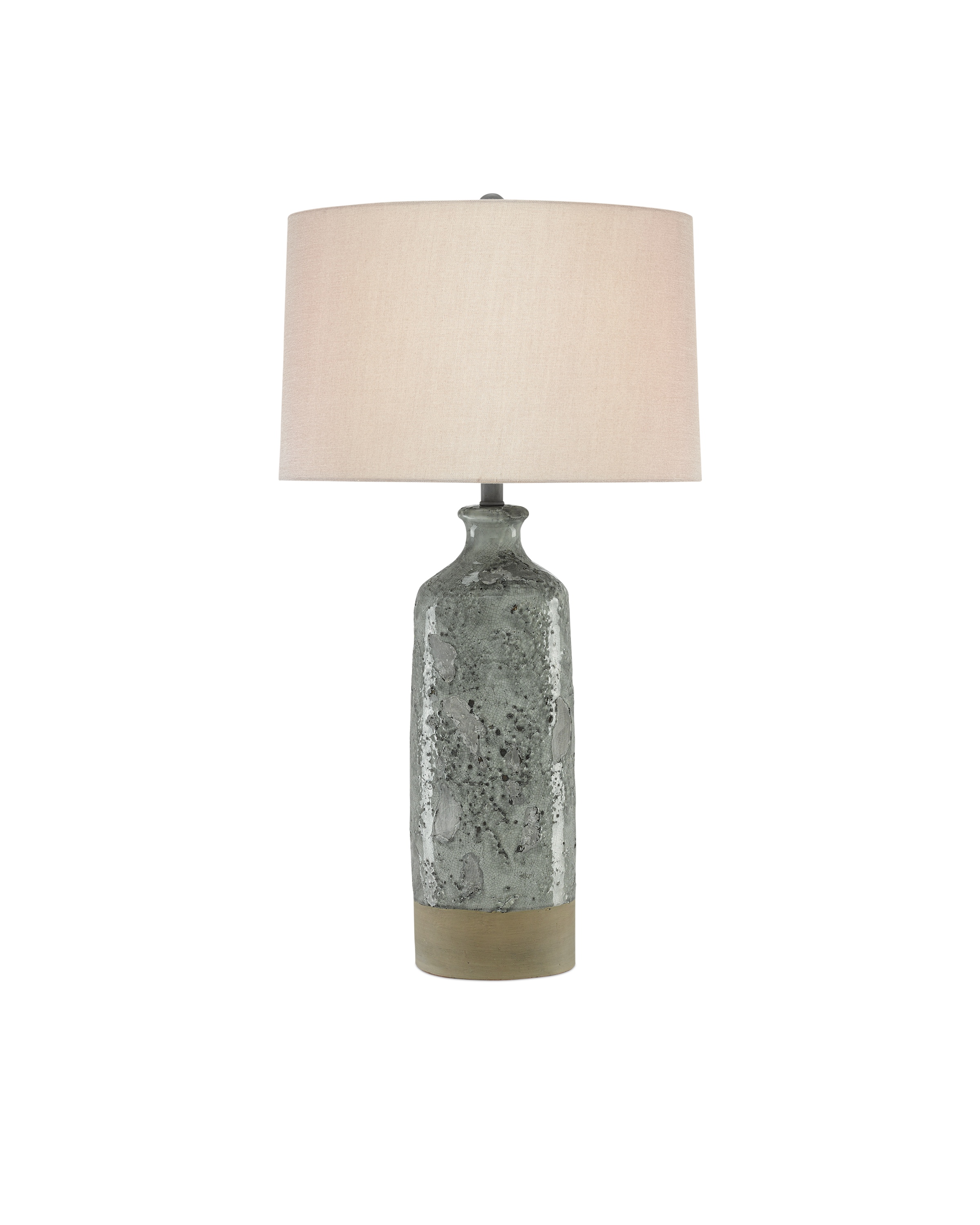 The Stargazer Table Lamp has a constellation of patterns on its terracotta body achieved when our finish artisans sprinkled the material with glass mosaics. The implied base is a band of terracotta left unfinished, the raw material a primitive contrast to the crackled portion of the gray table lamp.