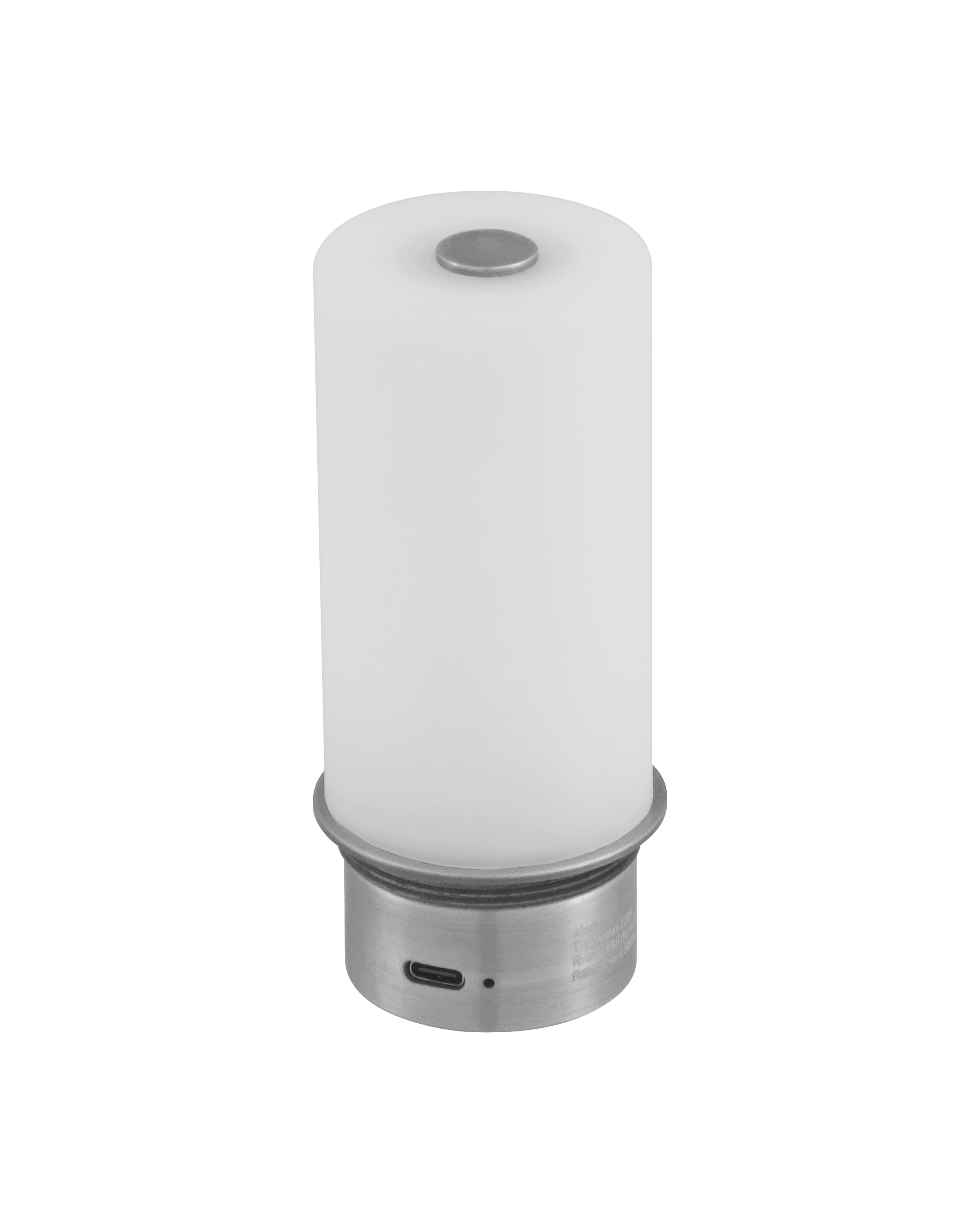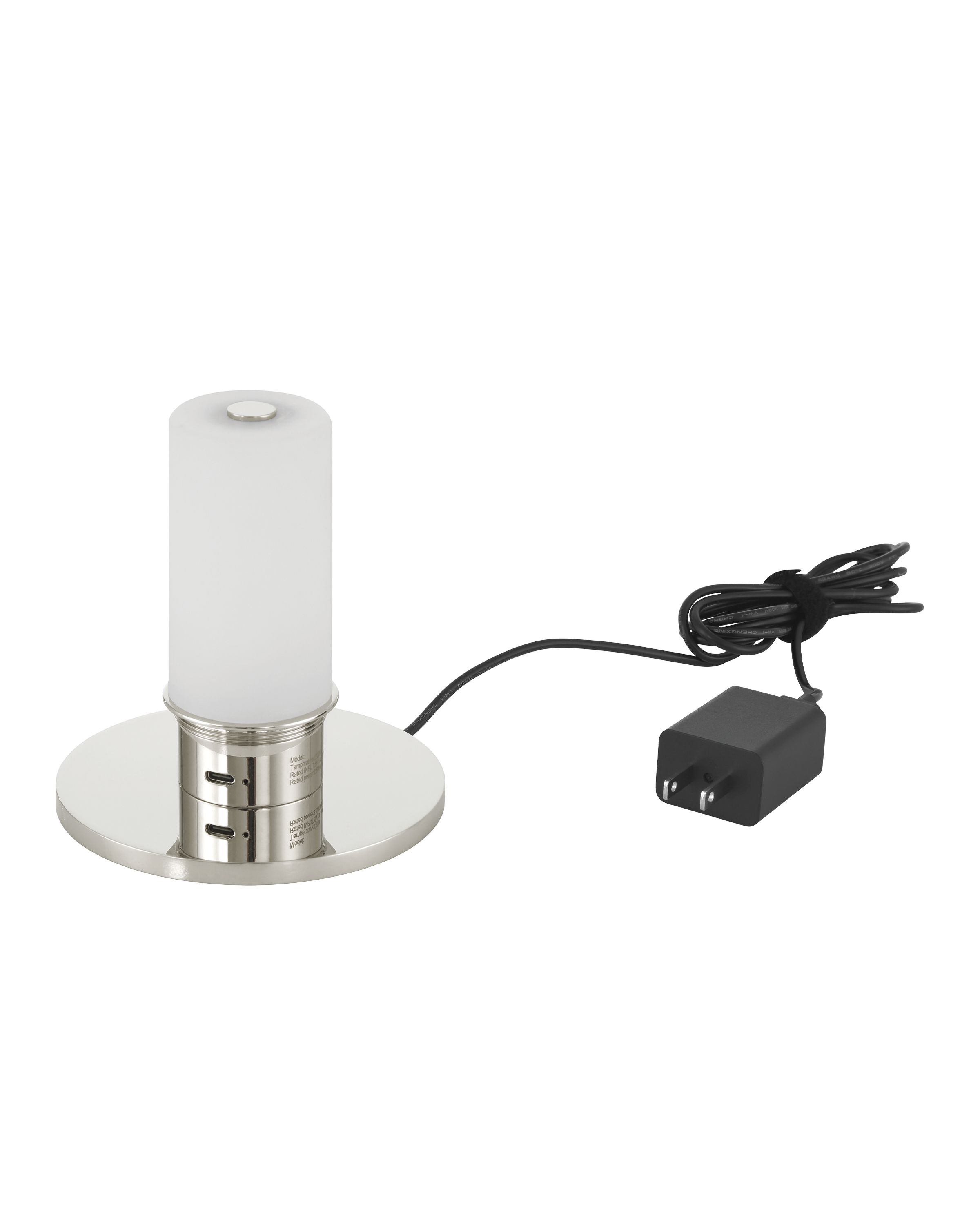 The Gadabout Nickel Cordless Table Lamp offers effortless versatility with a sleek, silver-toned design and a rechargeable bulb that makes it easy to move from room to room. The slim stem supports a polished nickel metal shade with a matching interior for a refined finish, while the on/off switch is conveniently located on top of the bulb.