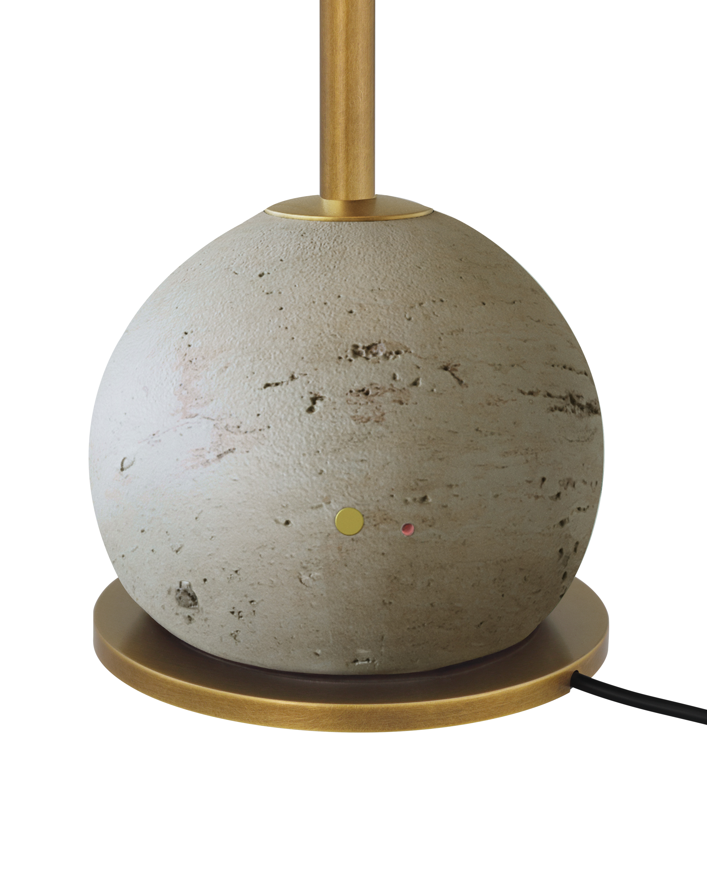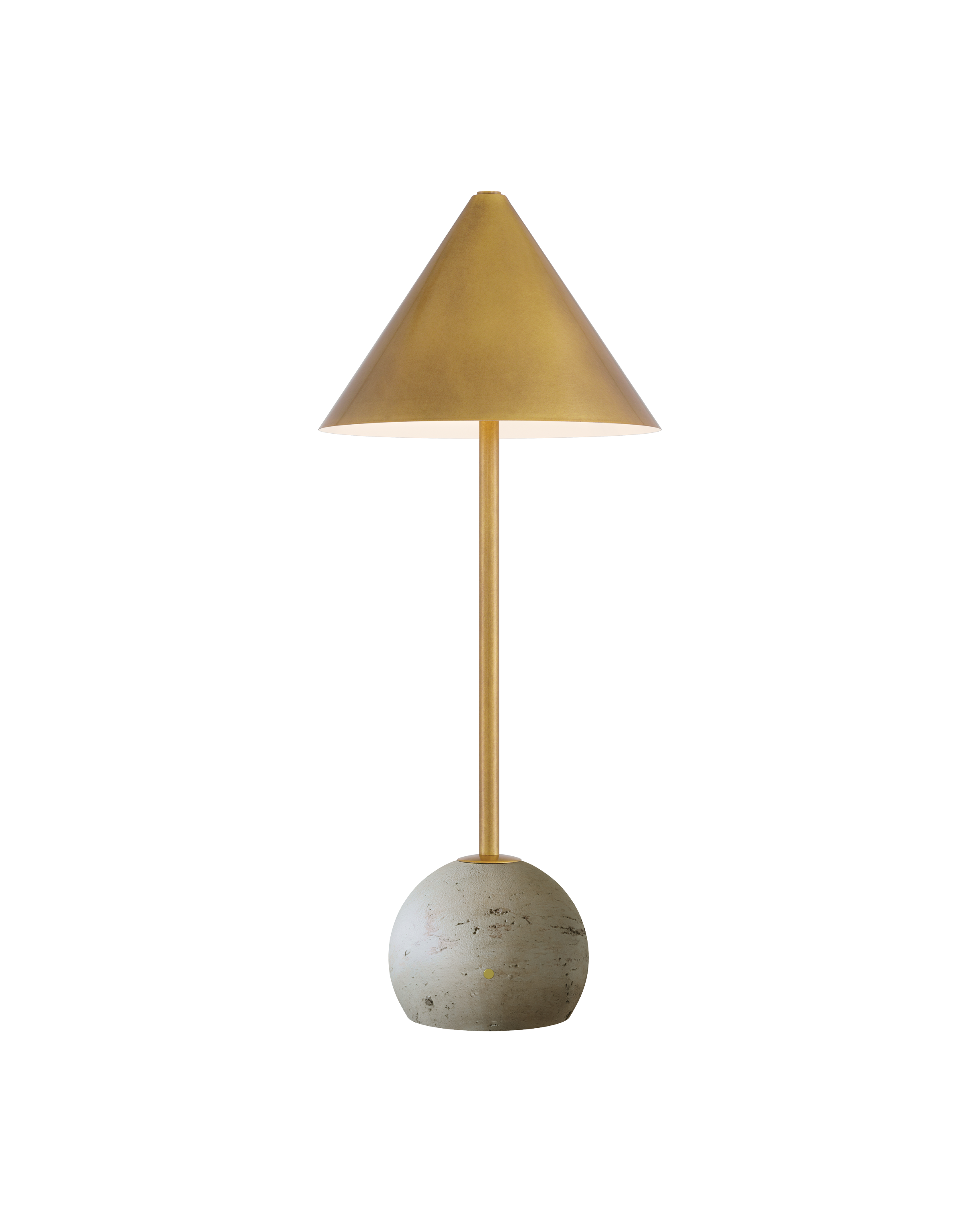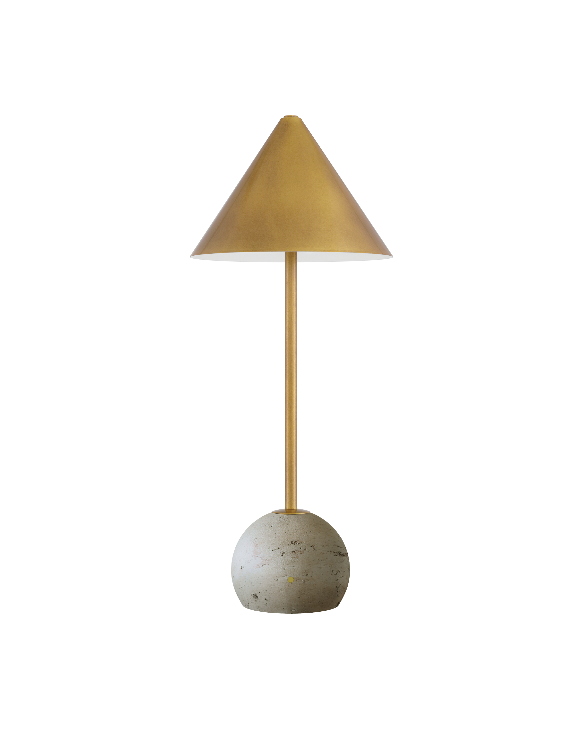 The Journey Natural & Brass Cordless Table Lamp combines style and function in a sleek, portable design. A slender stem in an antique brass finish rises from a pale marble globe base, complemented by a matching cone-shaped shade that adds a soft, sophisticated gleam. At under 20 inches tall, this compact lamp is easy to move and features an on/off button and a discreet battery-life indicator light on the side of the base, making recharging simple. With its mix of warm metal and natural stone, this cordless piece delivers refined charm wherever it’s placed.