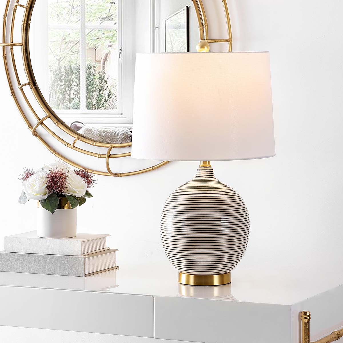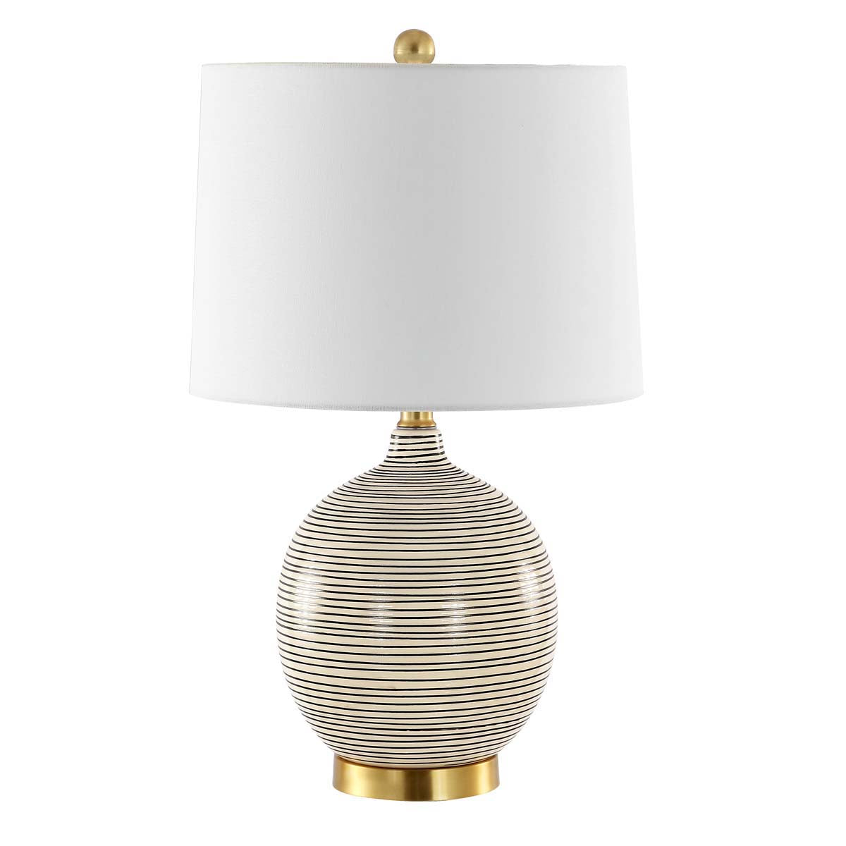This Kremp Table Lamp transforms the ancient art of pottery into eye-catching contemporary d?cor. Kremp?? illusionary striated ivory and black ceramic provide an eye-catching sense of depth and motion, while a built-in USB port at its shining gold base makes Kremp a must-have in any room.