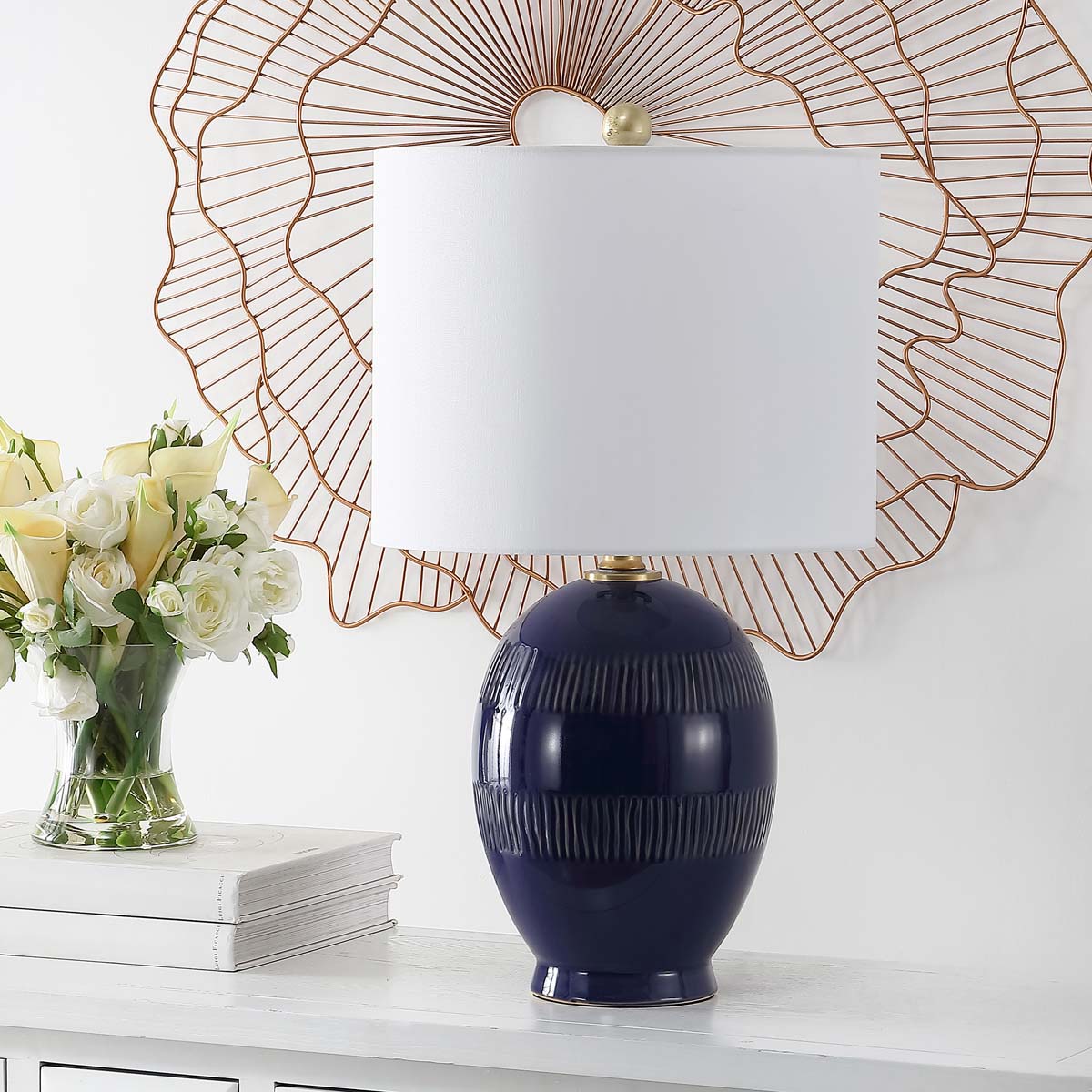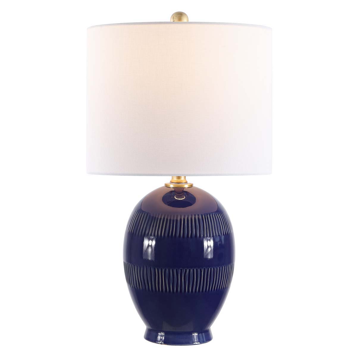 Give your d?cor an aura of palatial artistry with this Liney Table Lamp. Featuring a striking juxtaposition of royal blue crackle ceramic and regal gold hardware, Liney?? bands of linear detail adds captivating depth to its stellar design.