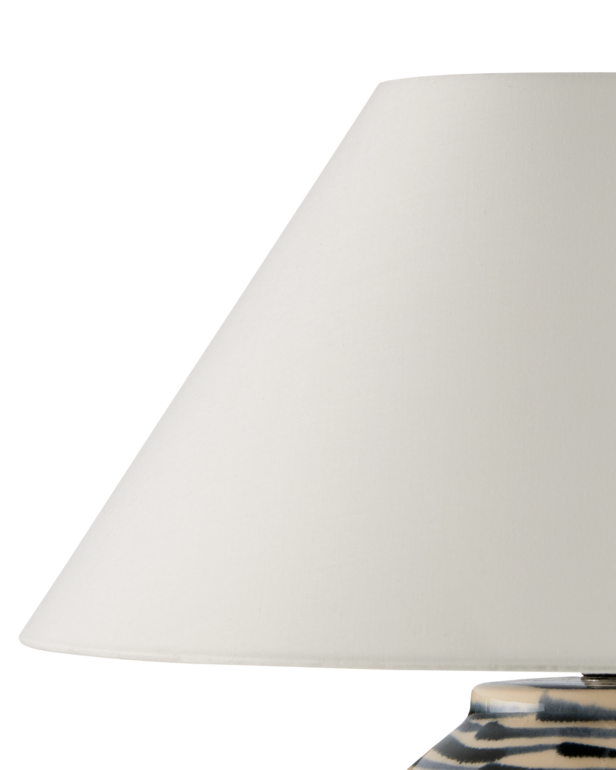 The Minnows Blue Table Lamp is swimming with personality, not merely from the streaking fish-like brush strokes on its ceramic surface, but from the crackle finish applied to the beige background beneath them. A flared empire shade adds to the Asian feel of this design. Because this lamp is hand-painted, the patterning will vary from piece to piece.