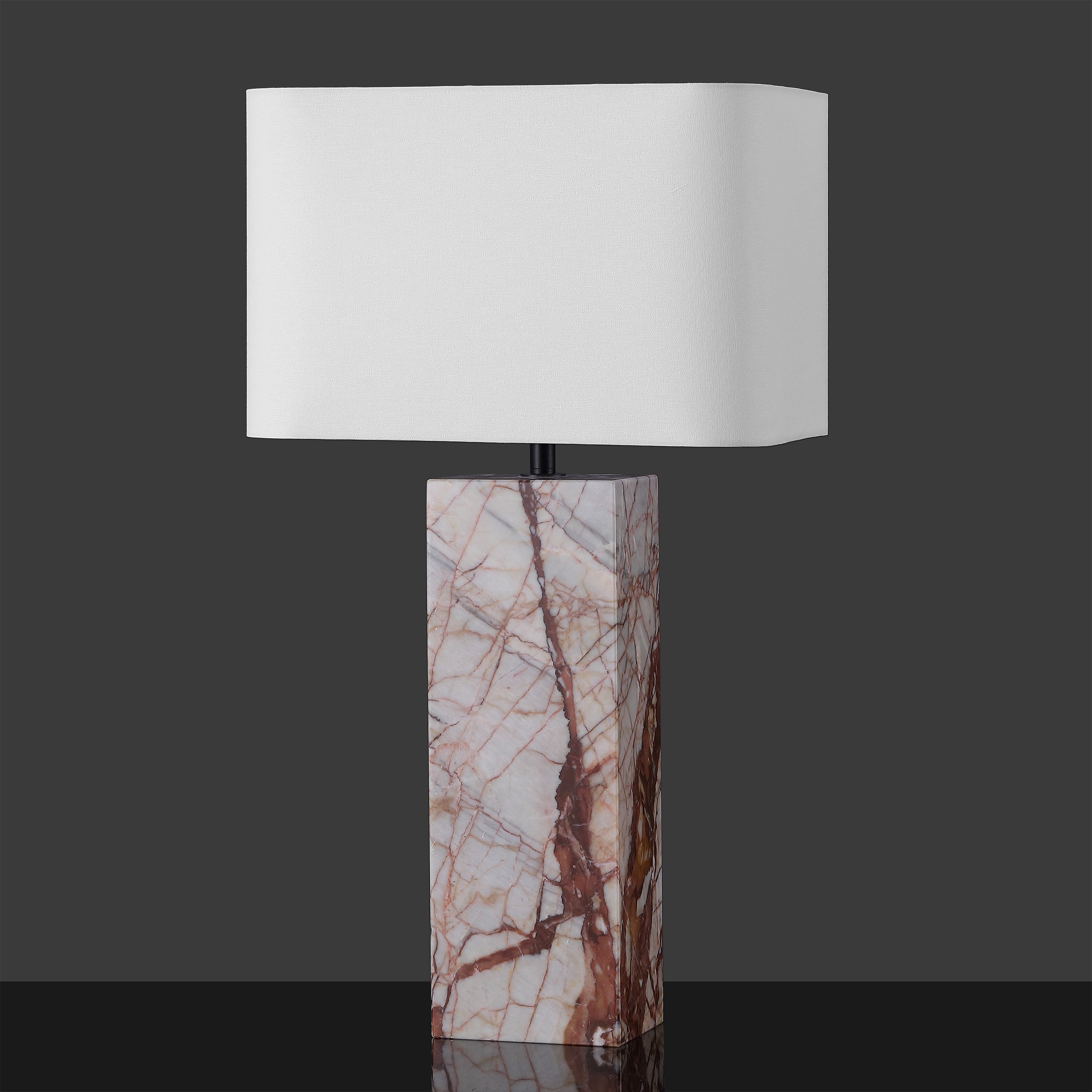 Illuminate your space with the enchanting CHRISETTE Marble Square Base Table Lamp. With a stunning blend of white and red, it effortlessly adds a touch of elegance to any room. The lamp's sleek white marble base provides a sturdy and chic foundation, while the smooth iron stem and delicately crafted shade beautifully complement its modern design. This lamp is more than just a source of light; it is a statement piece that enhances your decor with its sophisticated allure. Ideal for living rooms, bedrooms, or offices, its warm glow creates an inviting ambiance that transforms your surroundings. Elevate your interior with the CHRISETTE Table Lamp and experience the perfect fusion of style and function. Whether you are reading your favorite book or simply creating mood lighting, this lamp shines with grace and beauty. Add this captivating piece to your decor today and enjoy the timeless elegance it brings to your home.