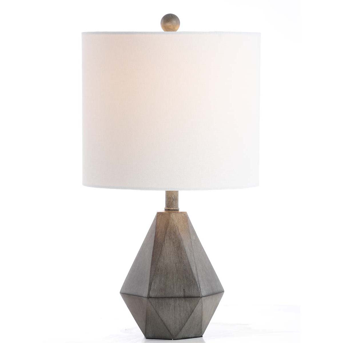 Bring mod style to any living room with this dramatic contemporary table lamp. Its sophisticated silver metal finish and geometric pattern add depth and dimension to its dark grey hue, while its complementary off white 100% cotton shade creates a bold contrast.
