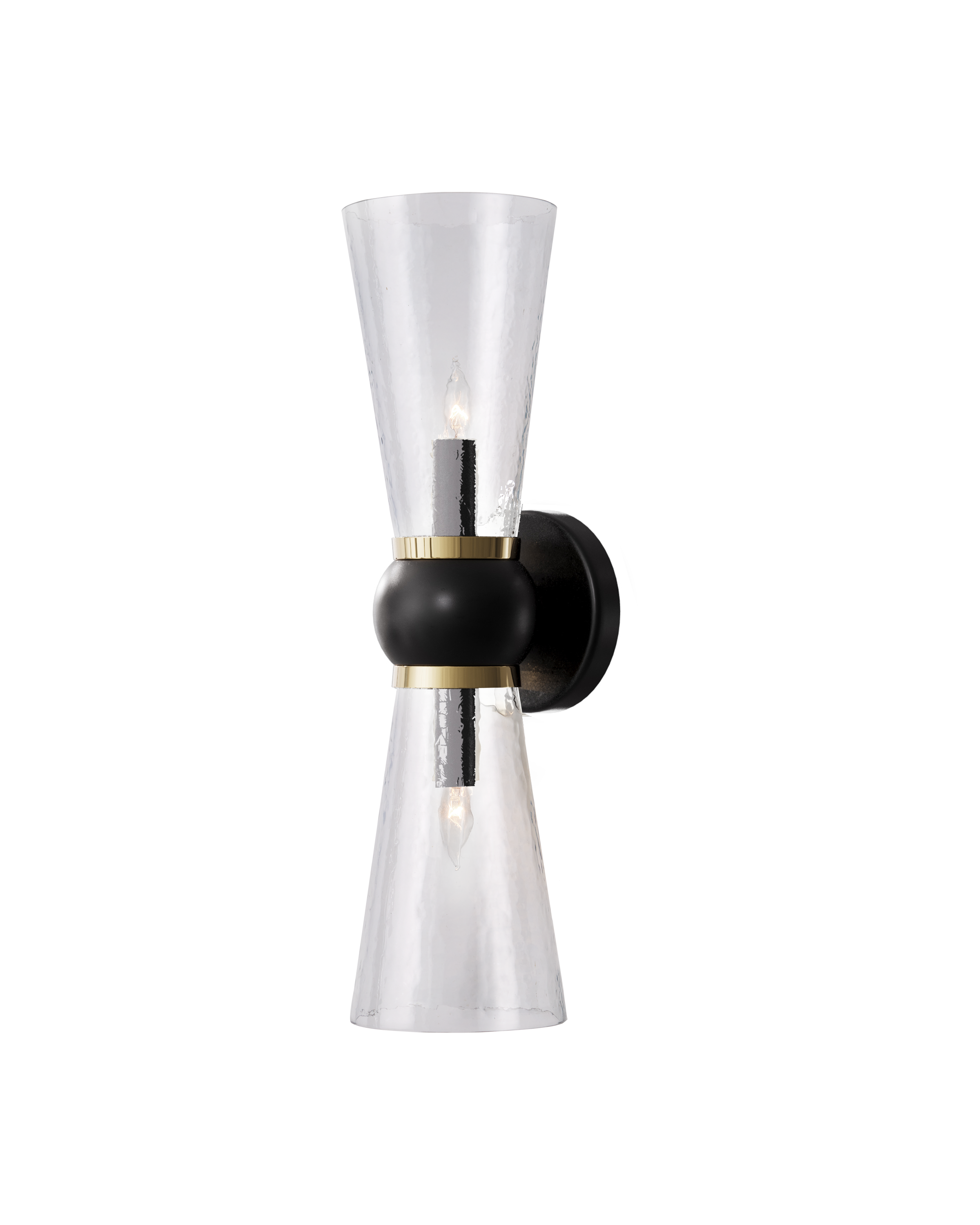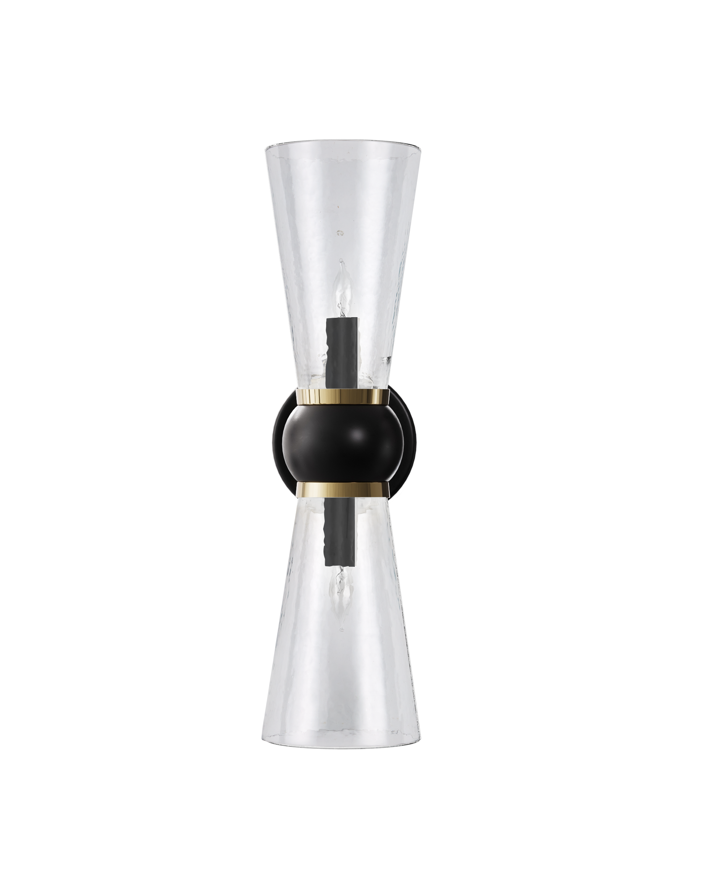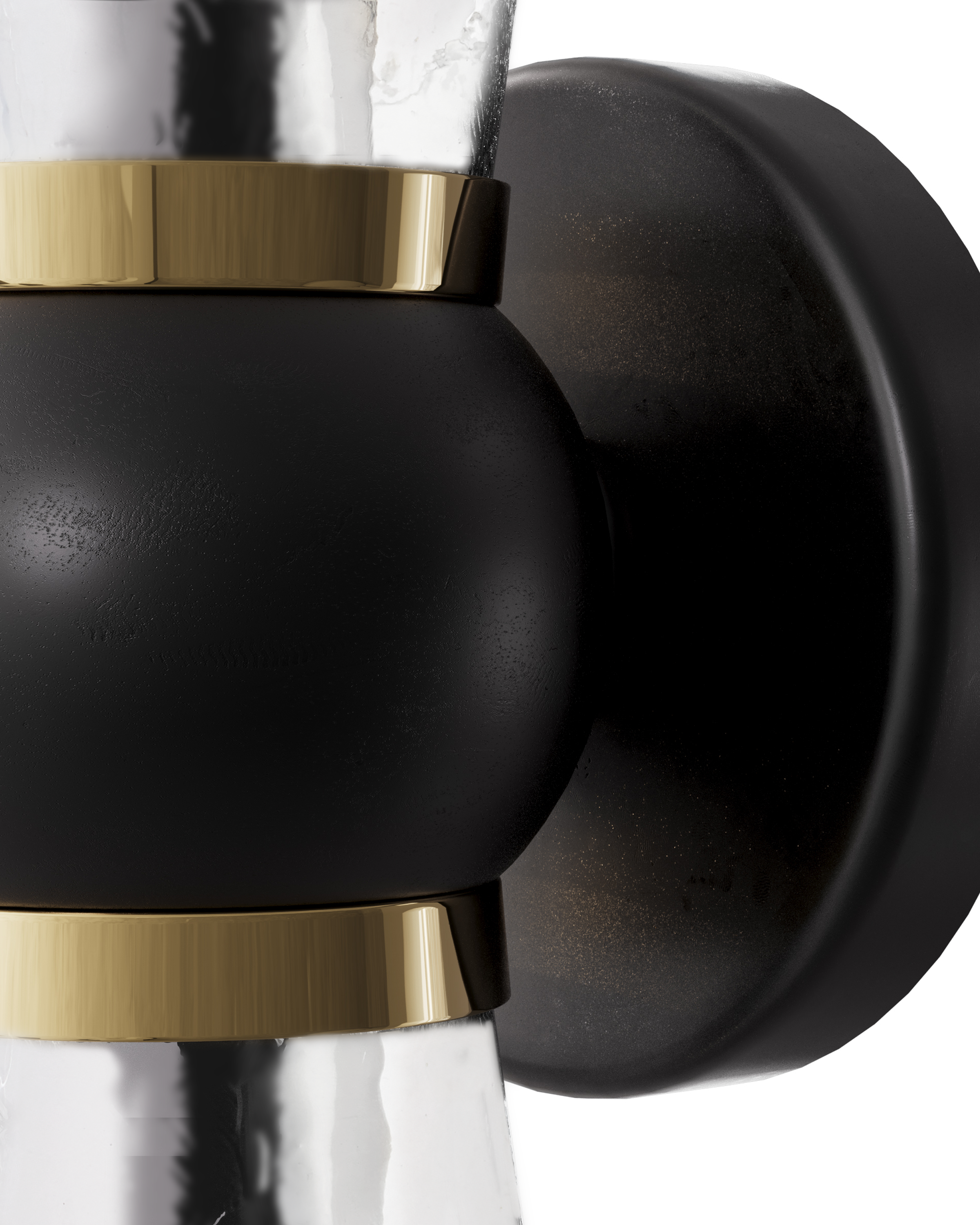 The conical glass cones on the Byford Bronze Bath Wall Sconce create a soft, diffused glow, perfect for bringing a cozy ambience to any bathroom. The black bath sconce is made of brass in an oil-rubbed bronze finish and the glass diffusers have a hammerd texture to them. These are stylish sconces for lighting up a bathroom vanity or a powder room.