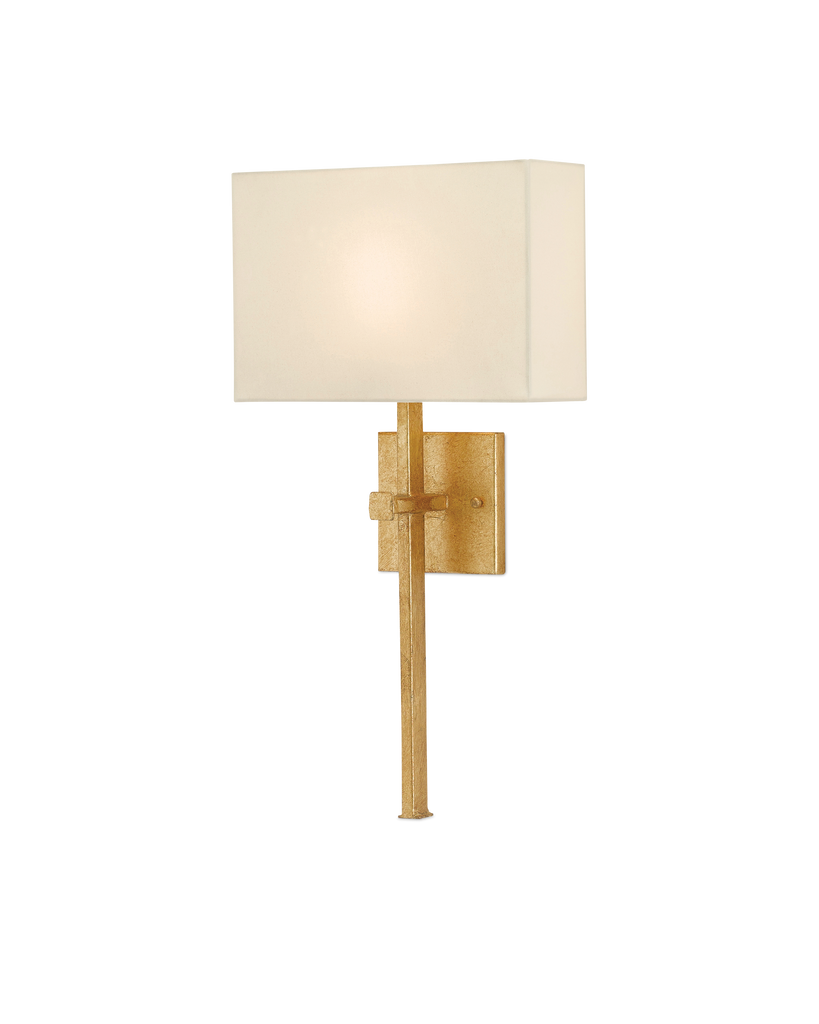 Currey & Co Ashdown Gold Wall Sconce, White Shade | 5900-0005