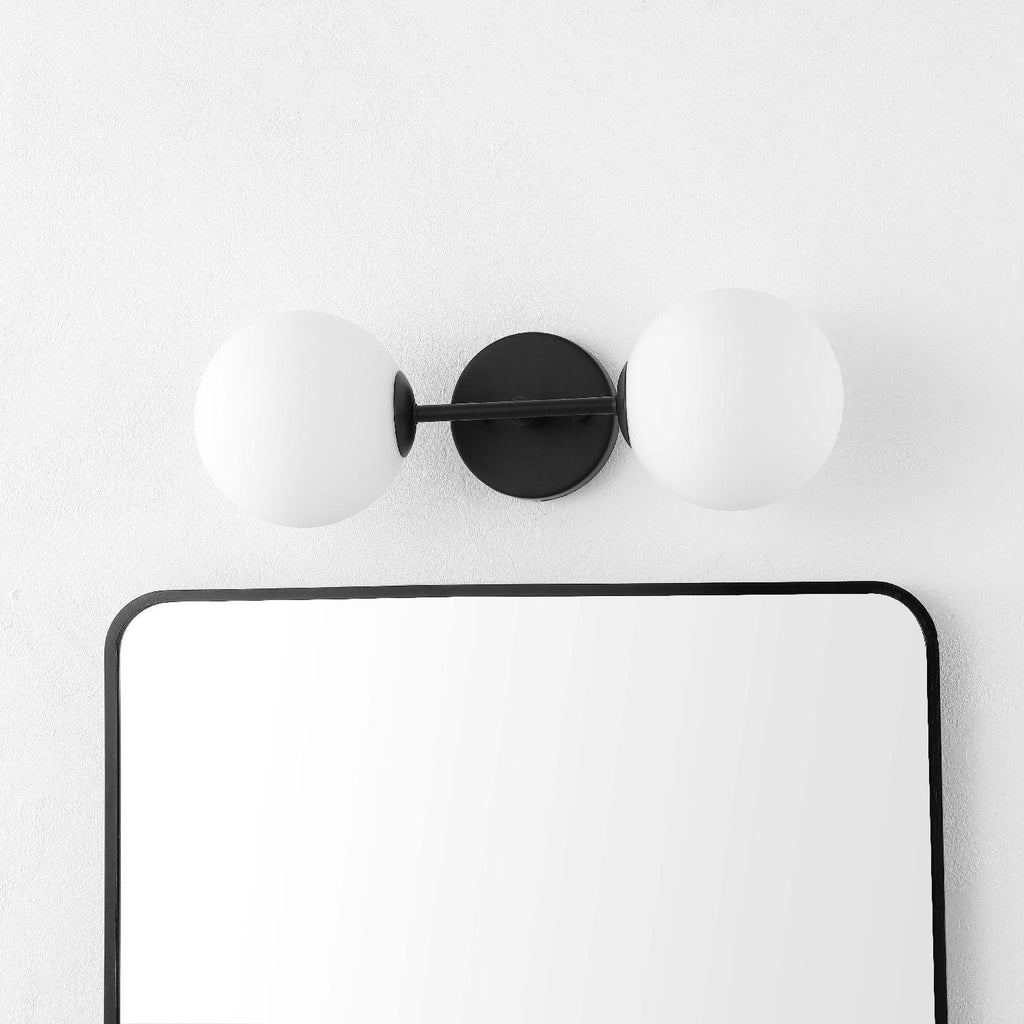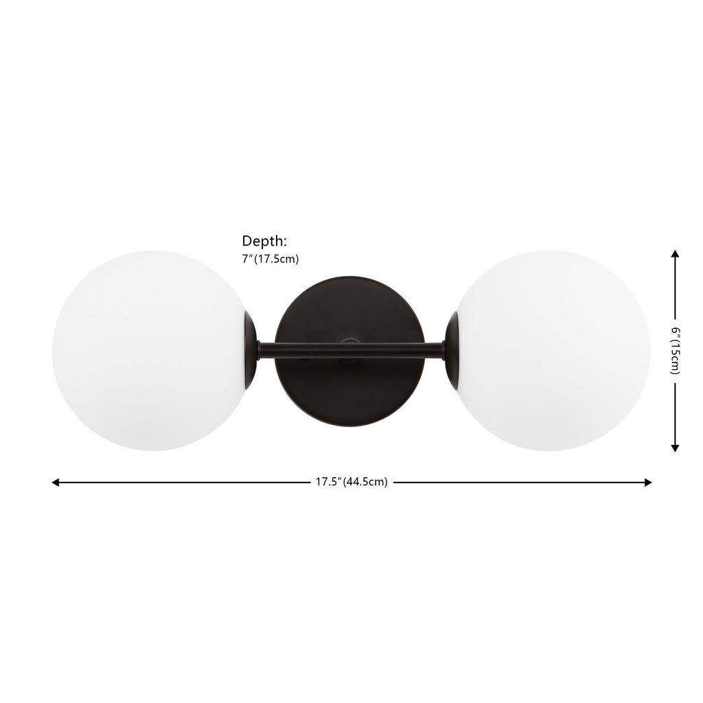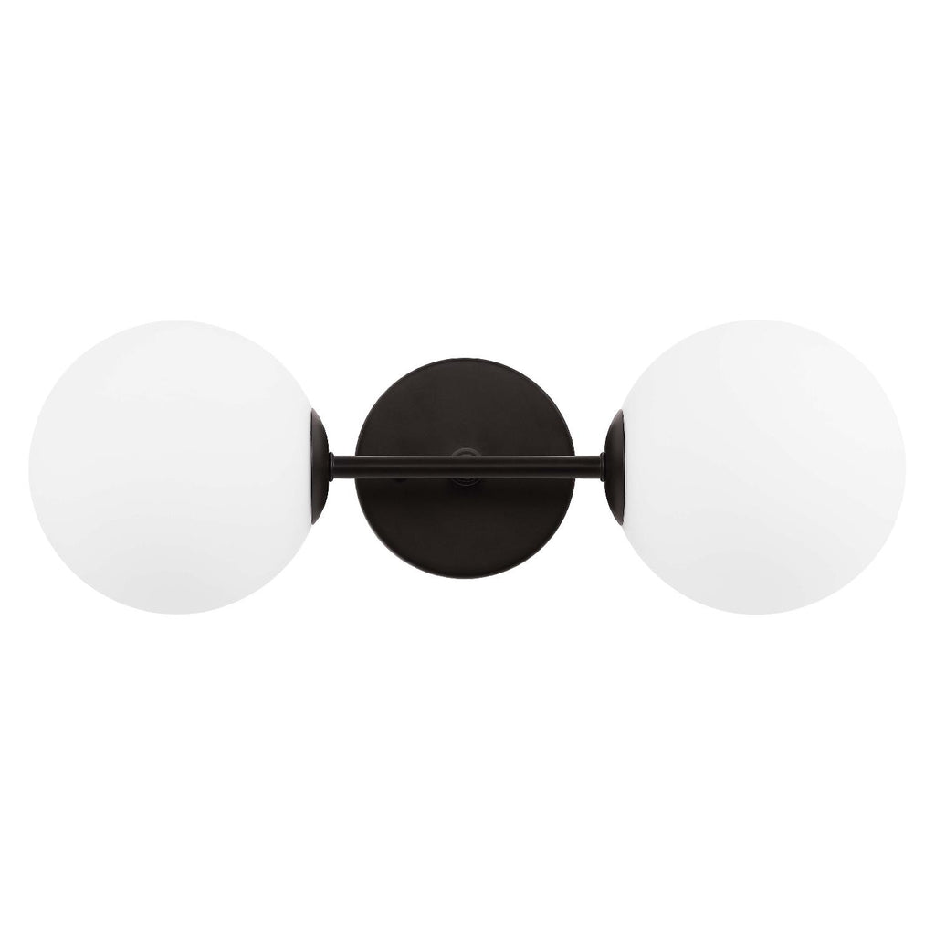 Style your home with the sleek and modern appeal of our Hymn wall sconce. Taking inspiration from mid-century modern designs, our wall light stands out with its bold geometry and streamlined profile. The striking globe shades and sleek black finish makes our wall sconce a welcoming and versatile addition to any modern or contemporary home. It includes a white frosted glass shade to strikingly diffuse a soft and pleasant glow in your hallway, bedroom, lounge, or home office.