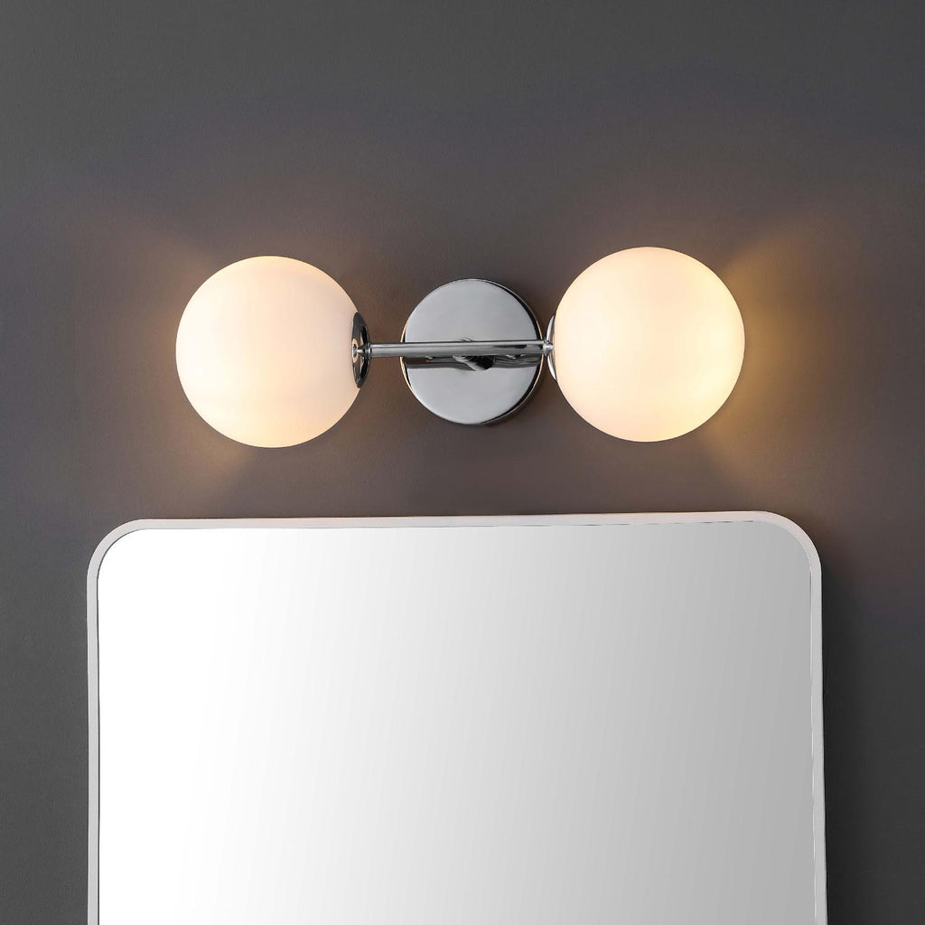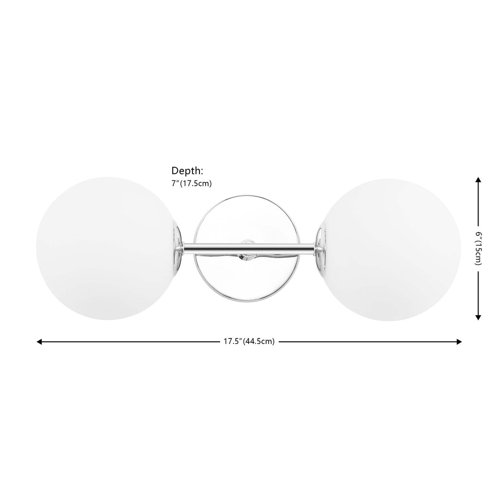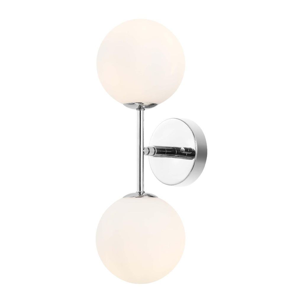 Style your home with the sleek and modern appeal of our Hymn wall sconce. Taking inspiration from mid-century modern designs, our wall light stands out with its bold geometry and streamlined profile. The striking globe shades and chrome finish makes our wall sconce a welcoming and versatile addition to any modern or contemporary home. It includes a white frosted glass shade to strikingly diffuse a soft and pleasant glow in your hallway, bedroom, lounge, or home office.