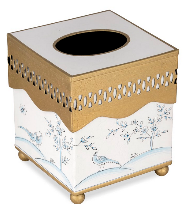Add a touch of elegance to your home with our hand-painted metal tissue holders, available in various designs. Each holder is crafted with care, showcasing unique artistry that combines functionality with stunning aesthetics, making them perfect for any room. For a coordinated look, pair it with our matching hand-painted wastepaper basket!
