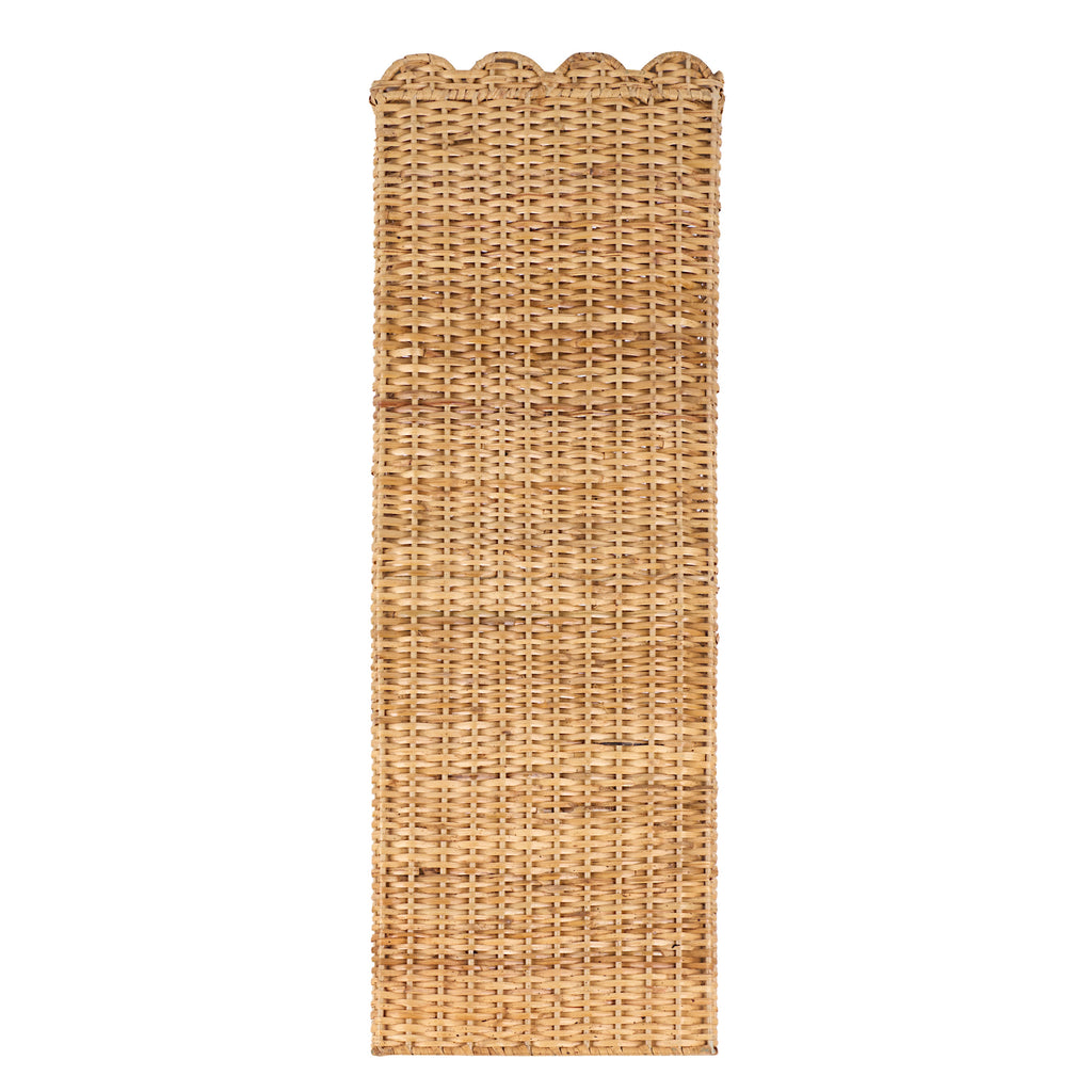 This striking wicker urn and pedestal combination brings timeless elegance to any interior space. The square silhouette features delicate scalloped trim detailing that adds refined visual interest, while the natural wicker construction offers warmth and texture. The coordinated pedestal base provides stable, graceful support, making this piece ideal for entryways, living rooms, or as a statement accent. Perfect for displaying florals, branches, or standing alone as sculptural décor, this sophisticated pairing seamlessly complements both traditional and contemporary design schemes.