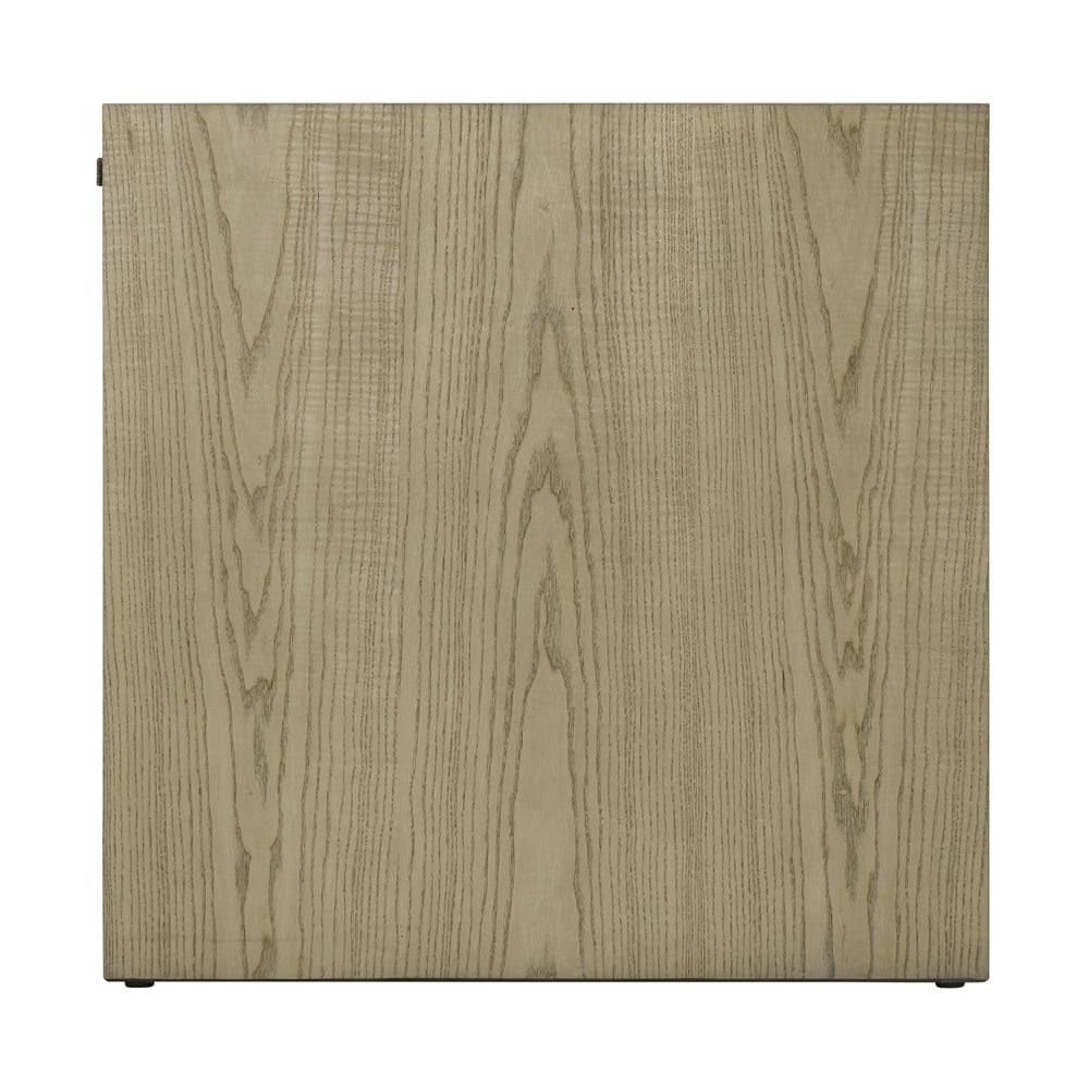 Figured cathedral ash desk with artful grain patterns. Four soft close drawers available in Dune or Earth with metal pulls in Ember finish.