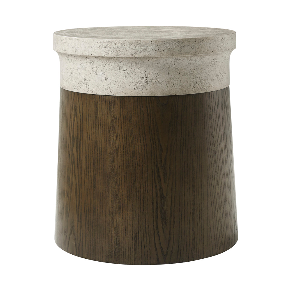 Contemporary accent table made of figured ash available in Dune or Earth with top in our stone-like porous Mineral finish.