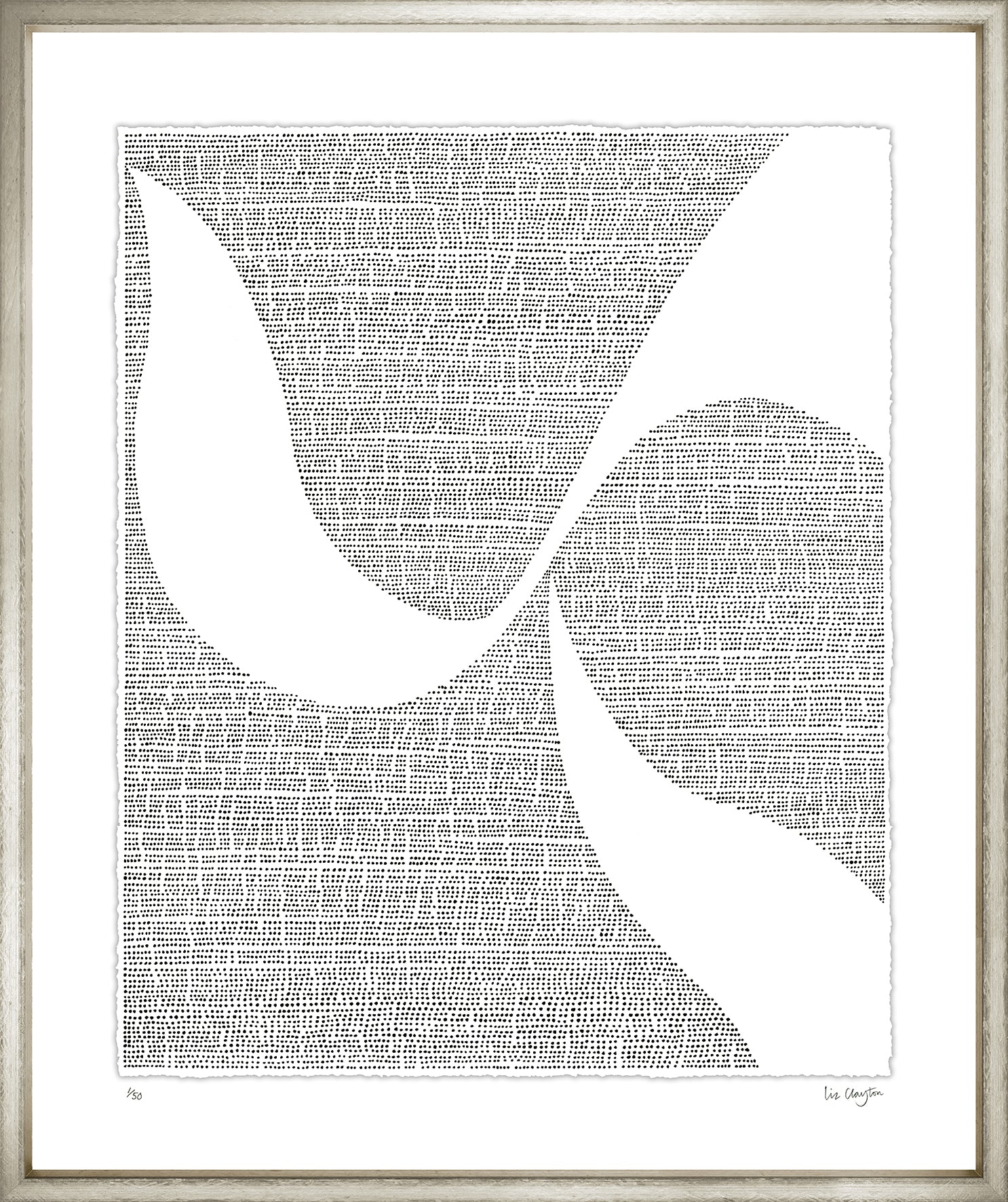 Using stippling Liz Clayton has created stems and petals by utilizing rows of dots and negative space.