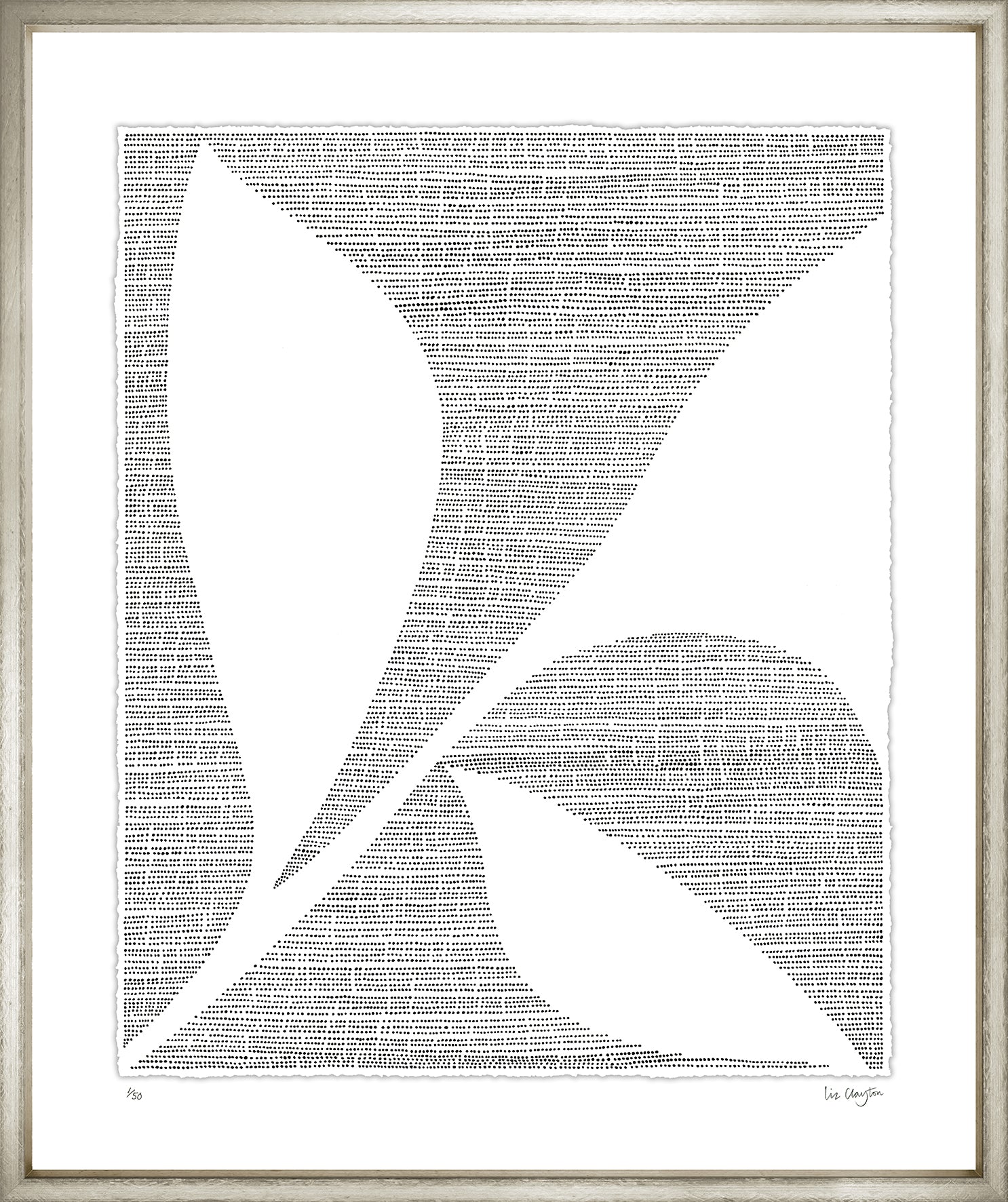 Using stippling Liz Clayton has created stems and petals by utilizing rows of dots and negative space.