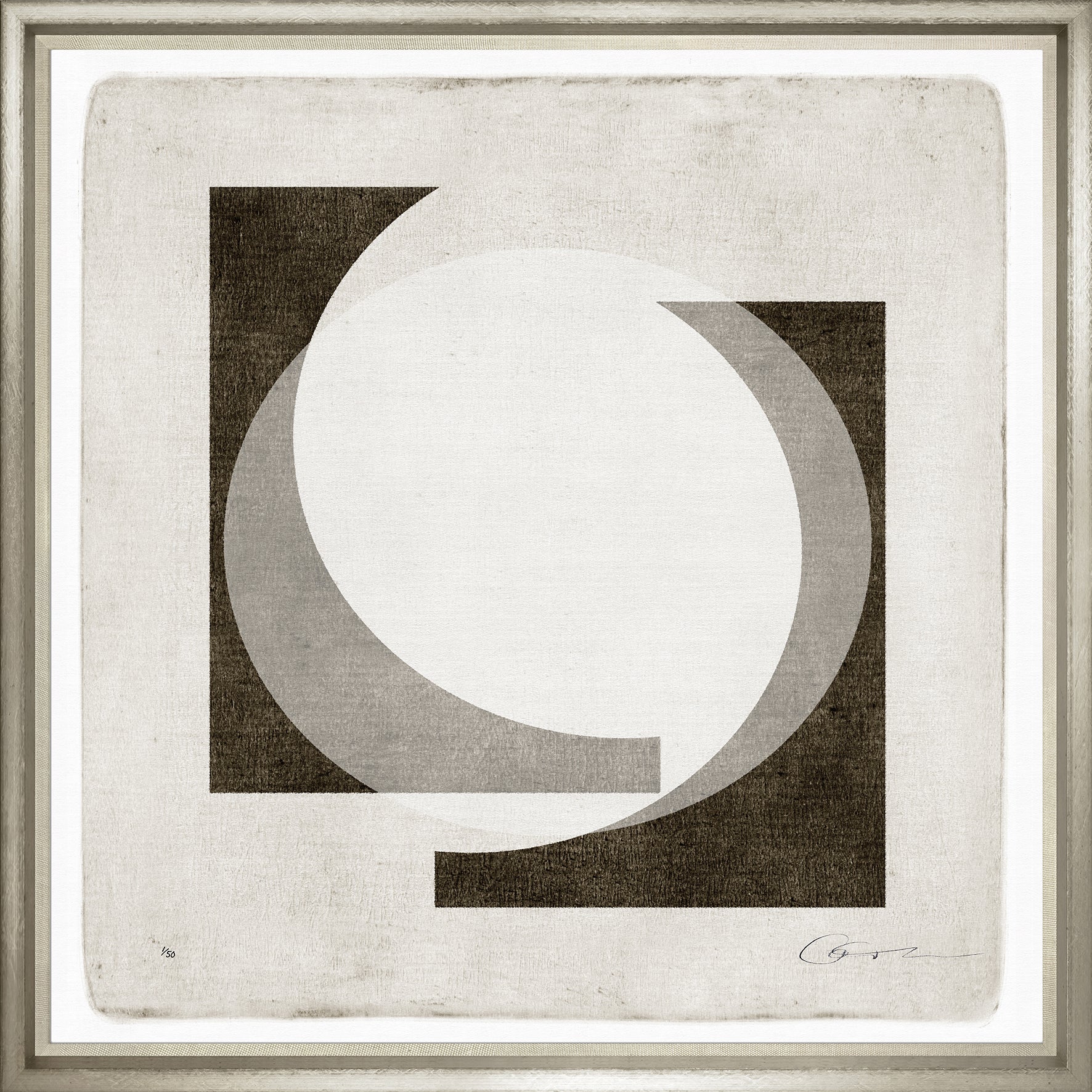 The Eclipse series is a culmination of multi-layered imagery that uses photographs, scanned wallpapers and interesting textures combined to make balanced tonal artworks. Malcolm Sanders has used true creativity to make a homogenised and harmonious collection that uses the fundamental elements of form, texture and tone in a most effective way. The simple round shapes are sometimes offset by an angled or echoing one and this is all balanced by the soft wallpaper-like texture of the neutral background.