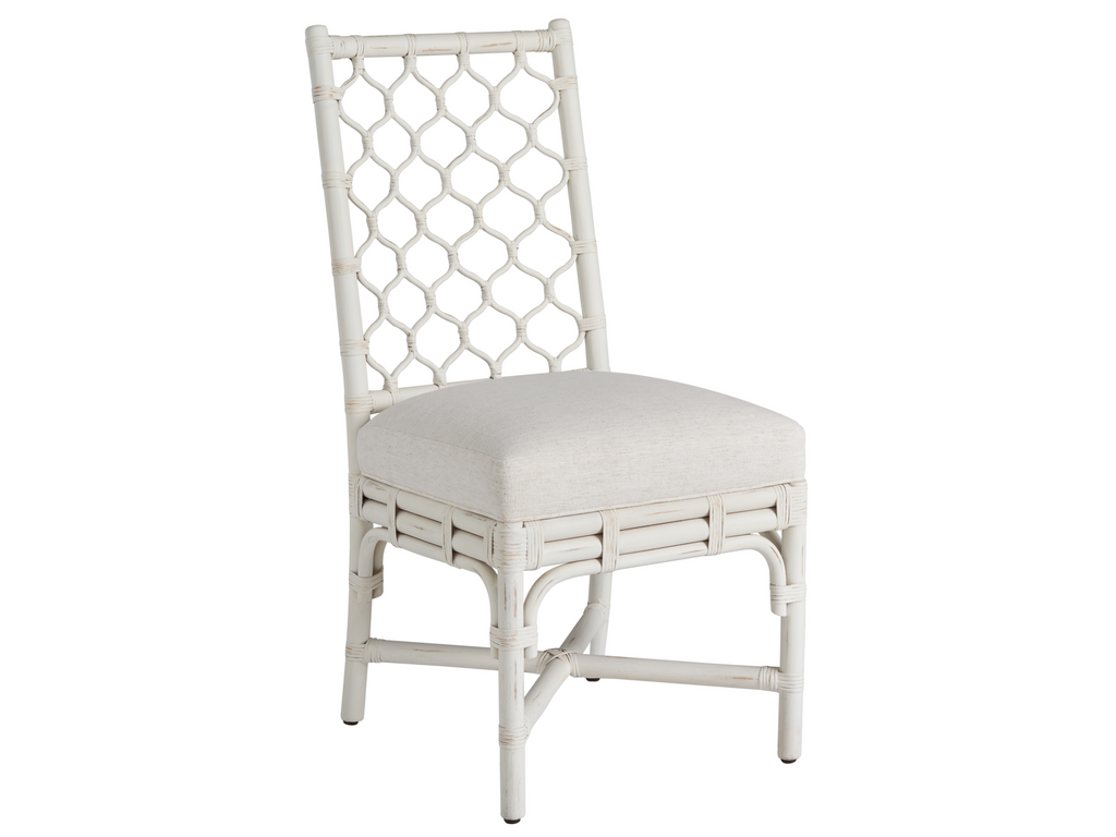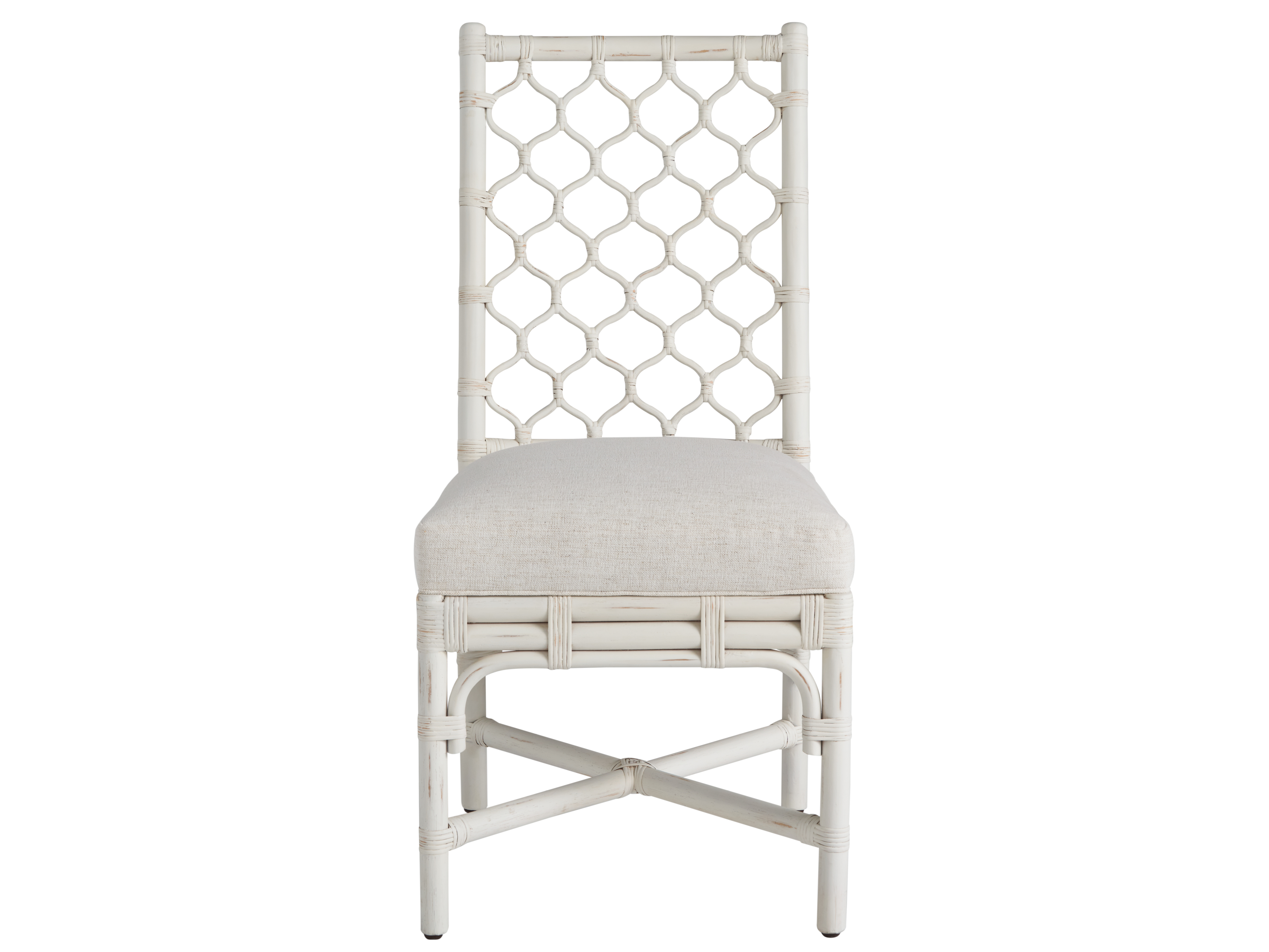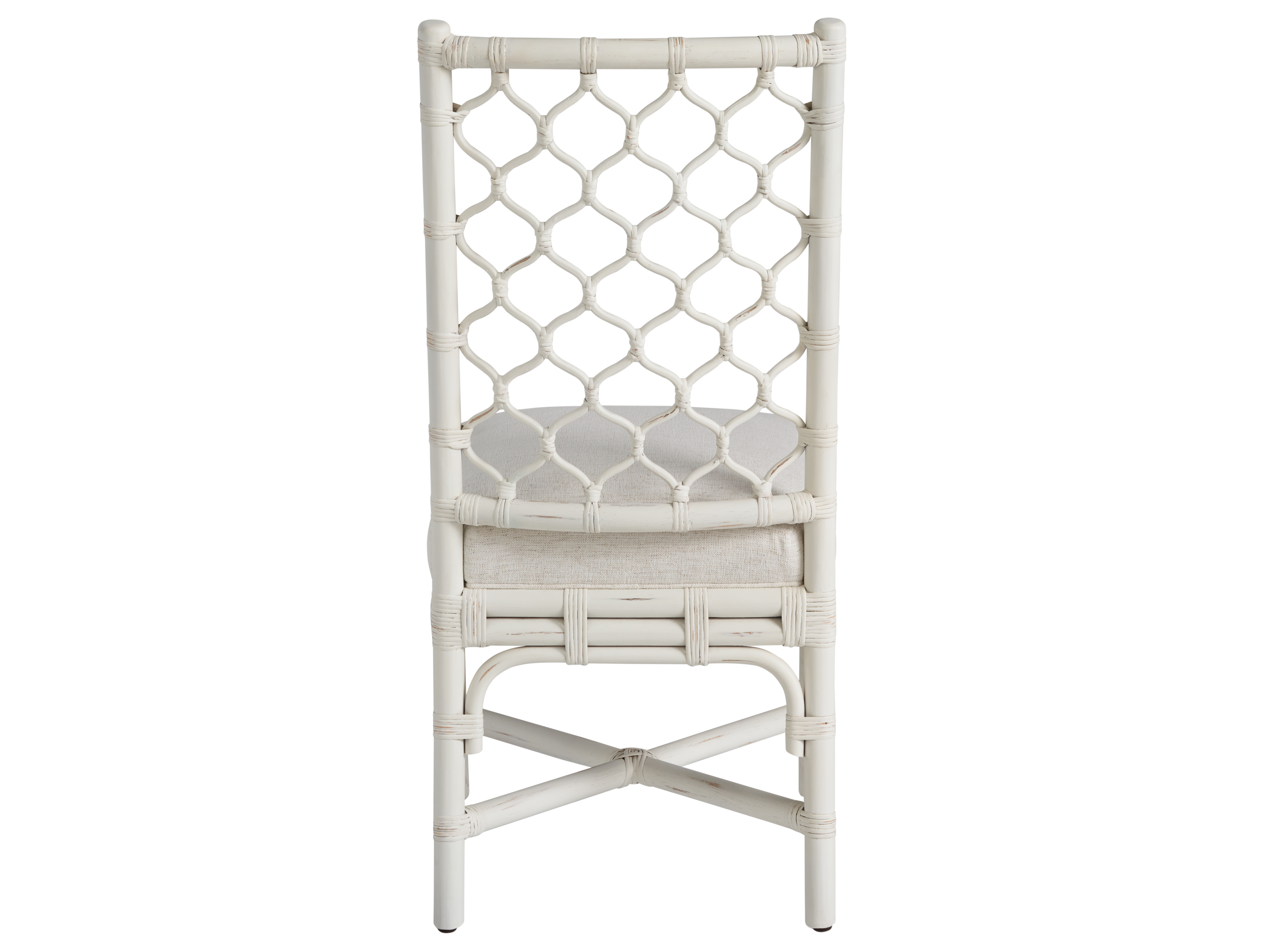 A quintessential quatrefoil pattern defines the Marco Side Chair. A fresh white finish paired with an upholstered seat brings the chair to life.