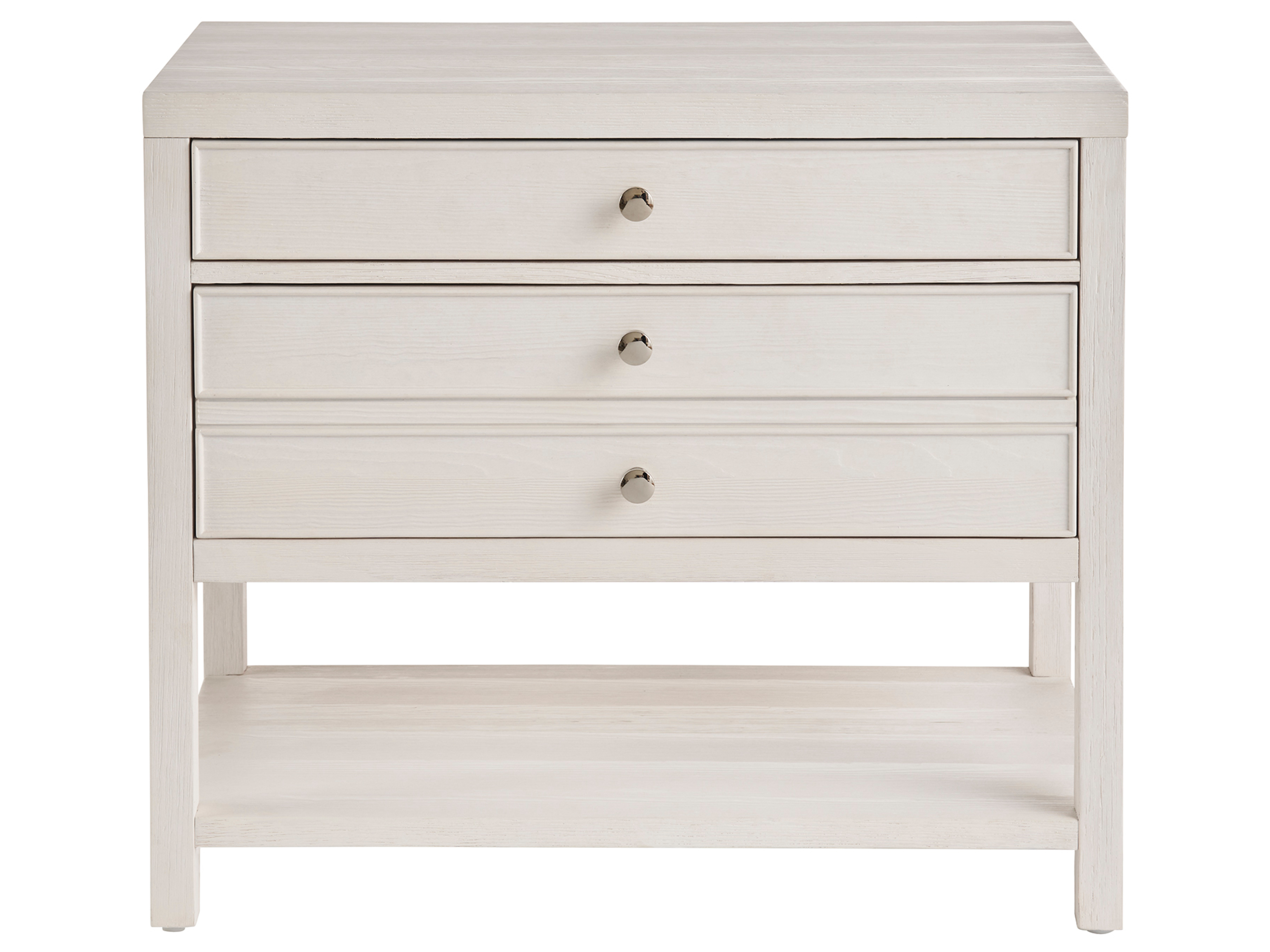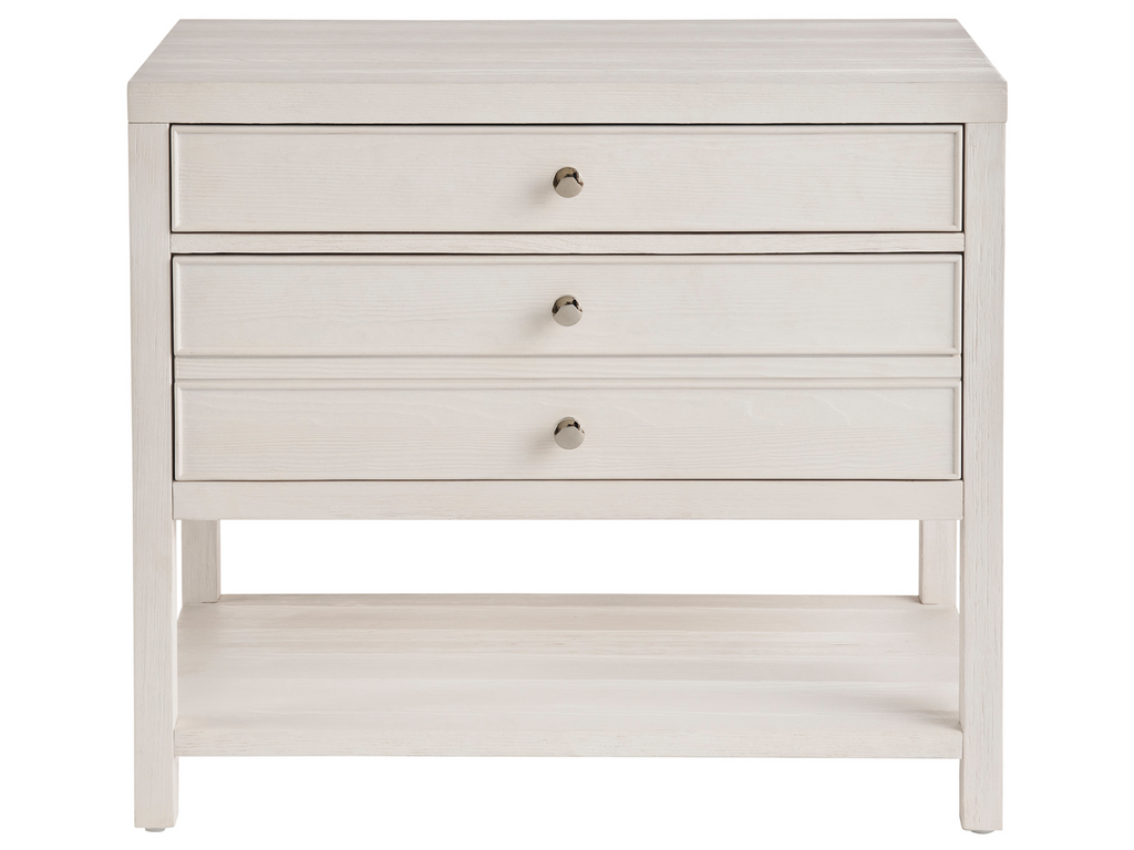 Featuring a combination of enclosed drawers and a lower open-air shelf, the Saugatuck Nightstand enhances bedsides with a lighthearted appeal.