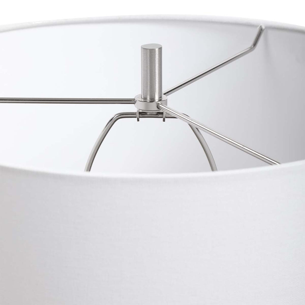 A Contemporary Take On Classic Blue And White Ceramics, This Table Lamp Features A Unique Sculpted Design With A Hand Applied Light Cobalt Blue Drip Glaze. The Lamp Is Paired With A Crisp White Hardback Drum Shade.