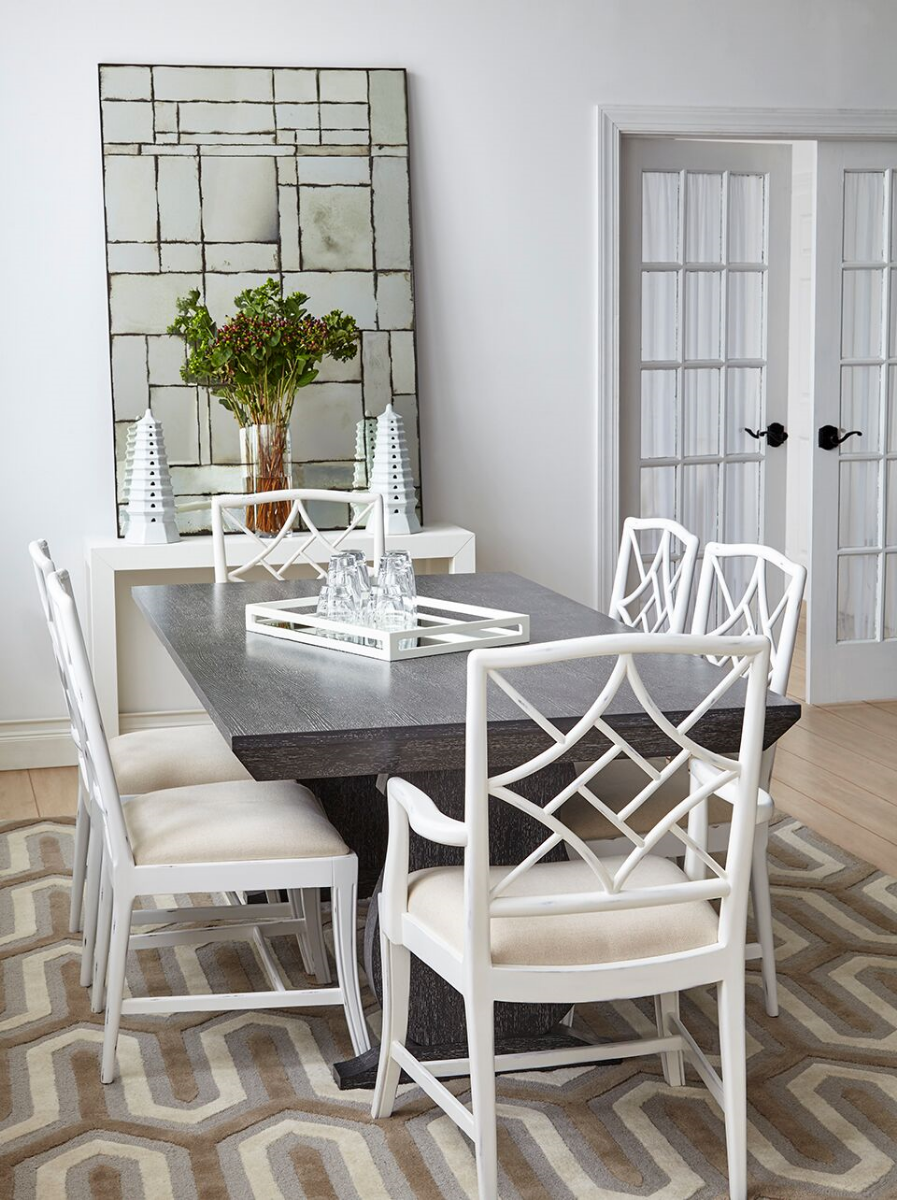 The Evelyn Collection brings Eastern-inspired elegance to life. Our simplified interpretation of Thomas Chippendale’s famous chinoiserie design gives our chairs a more relaxed, contemporary feel with a dash of country charm. Created from mahogany with an antiqued lacquered white finish, the frame of the Evelyn Armchair boasts an intricate fretwork back nodding to its Asian inspiration, with a softly rounded top. Gently curved details appear throughout, from the slight dip in the seat to the fluted, tapering legs. A linen drop-in cushion completes the piece, making it a comfortable yet stylish pick for a kitchen or dining room set.23w x 21.5d x 39h
