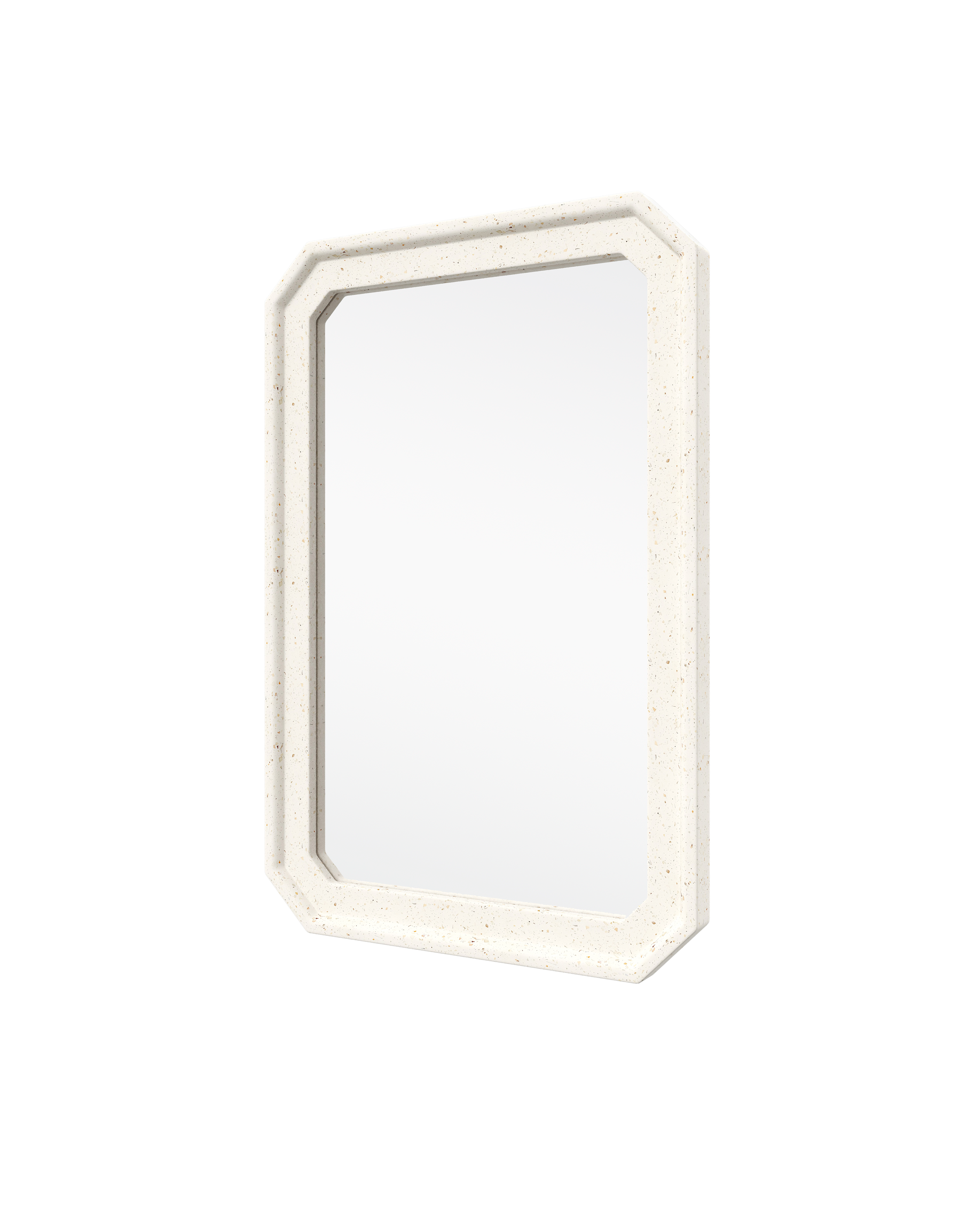 The Carson Ivory Mirror blends durability and modern sophistication. Crafted from sturdy concrete, it features a sleek ivory terrazzo finish that is infused with tempered glass fibers that creates soft amber and metallic flecks. It is suitable for both indoor and covered outdoor spaces, making it an ideal choice for patios, entryways, or living areas.