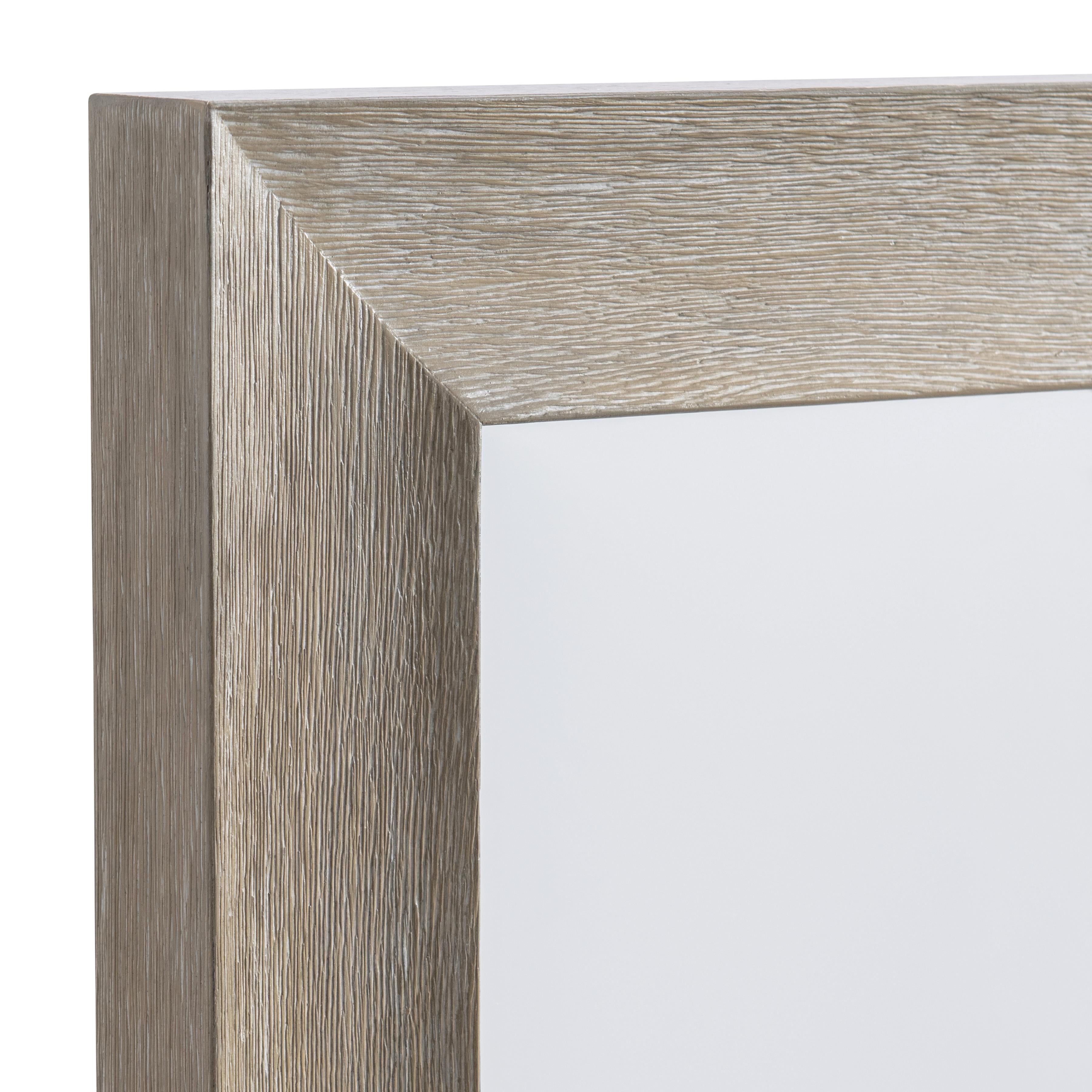 The Loggia mirror takes sleek lines and gives them a modern rustic style in textured wood. The frame curves gently towards the glass while the textured wood is finished in Aria.