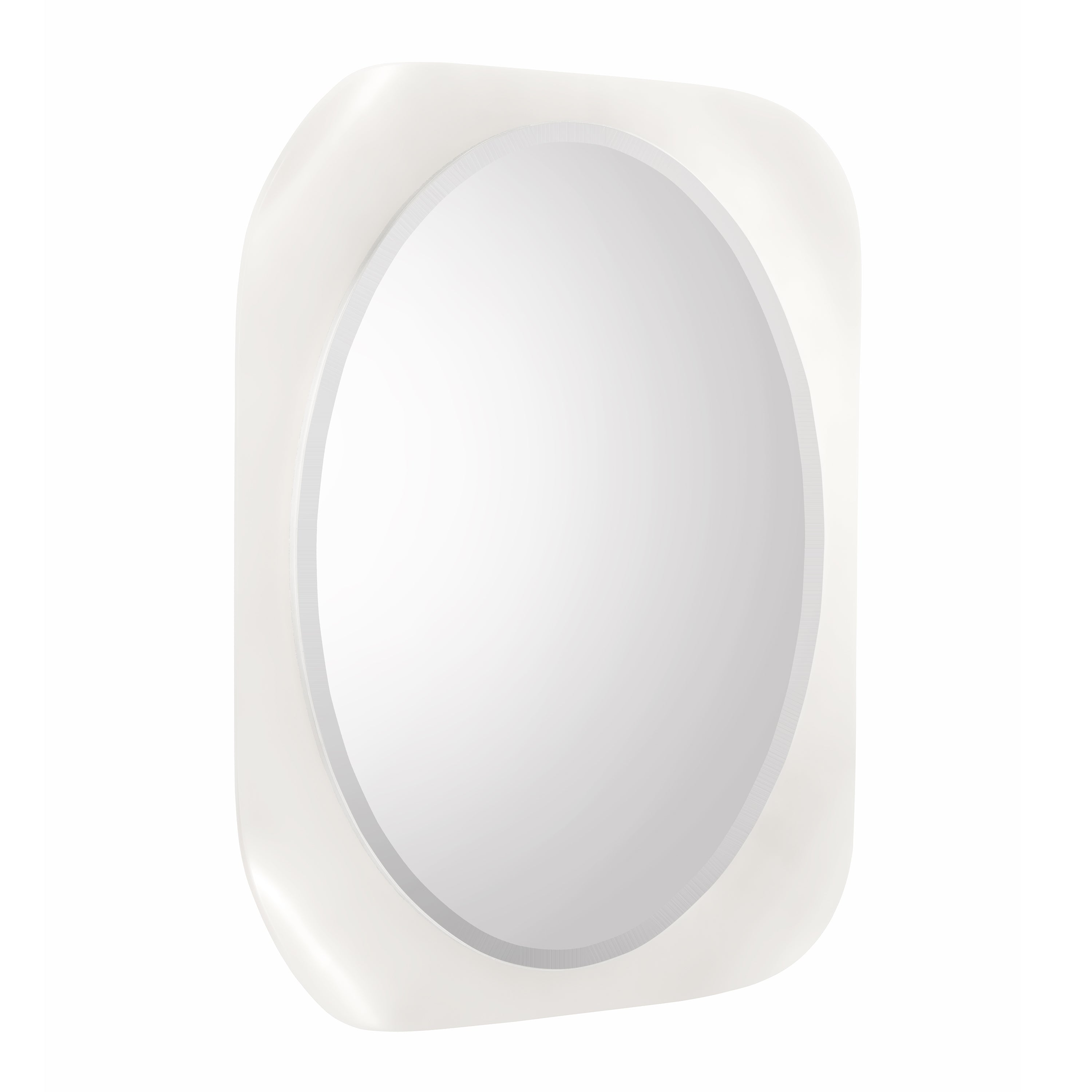 The Forma Mirror features a subtle, elegant profile that leverages gentle curvature to greatly elevate a space in both style and atmosphere. An ovate mirror with gorgeous bevels is mounted to a rounded square platform in a Champagne Silver finish, matching the edges of the mirror's frame. This cool metallic tone provides contrast with the with soft edges, resulting in a tasteful statement piece that exudes a playful yet sophisticated personality.