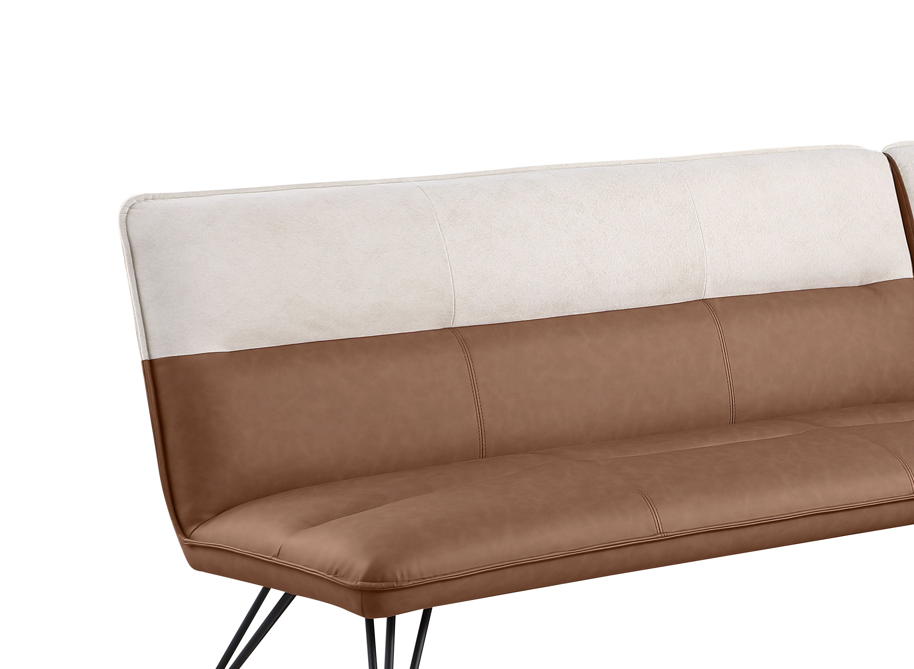 This contemporary two-tone nook is sure to turn heads in any living space. Beset in a cream fabric and a brown patterned faux leather, the seat is finished atop a smart set of curved steel legs in a charming matte black finish.